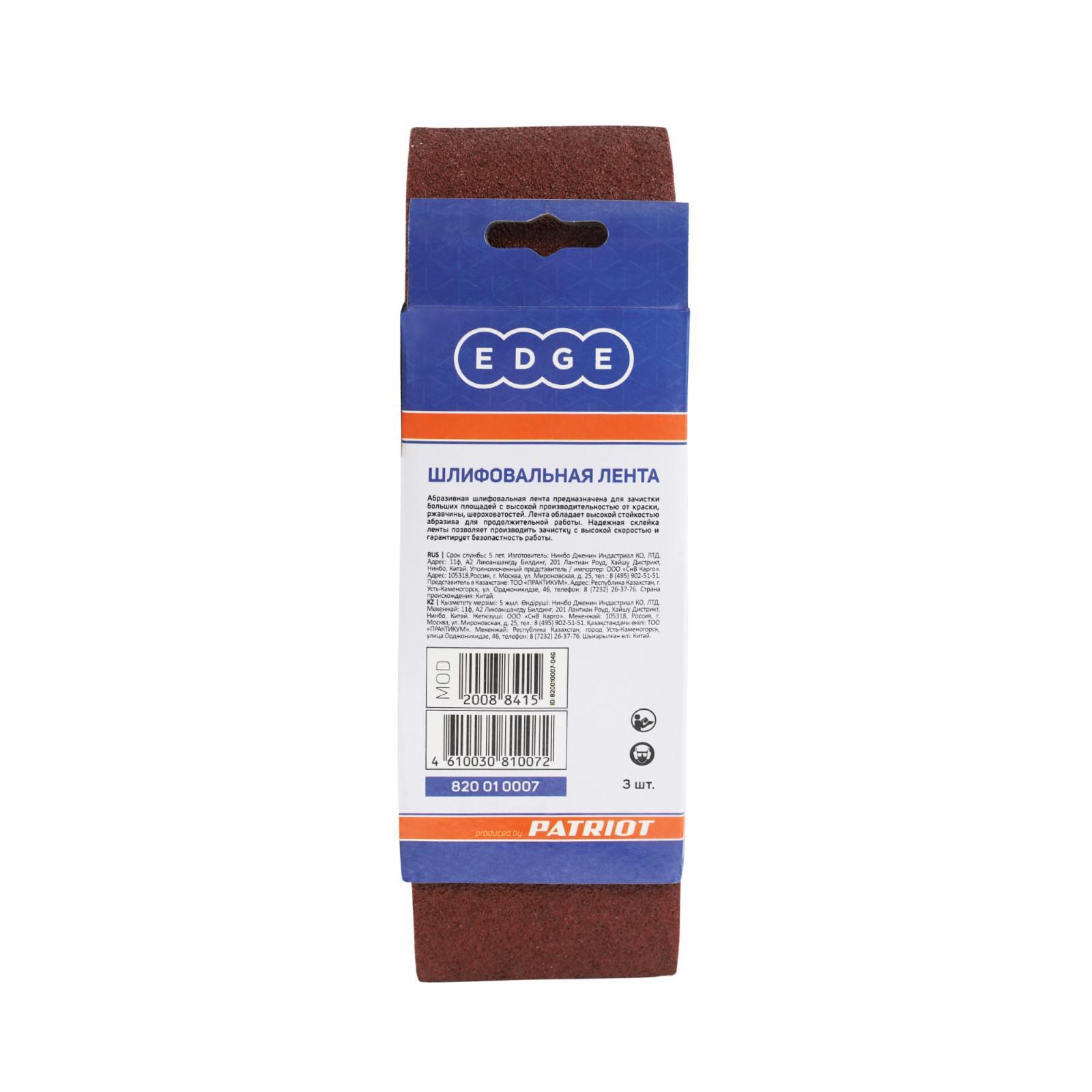Лента абразивная EDGE by PATRIOT, 75х533 мм, Р40, 3 шт.
