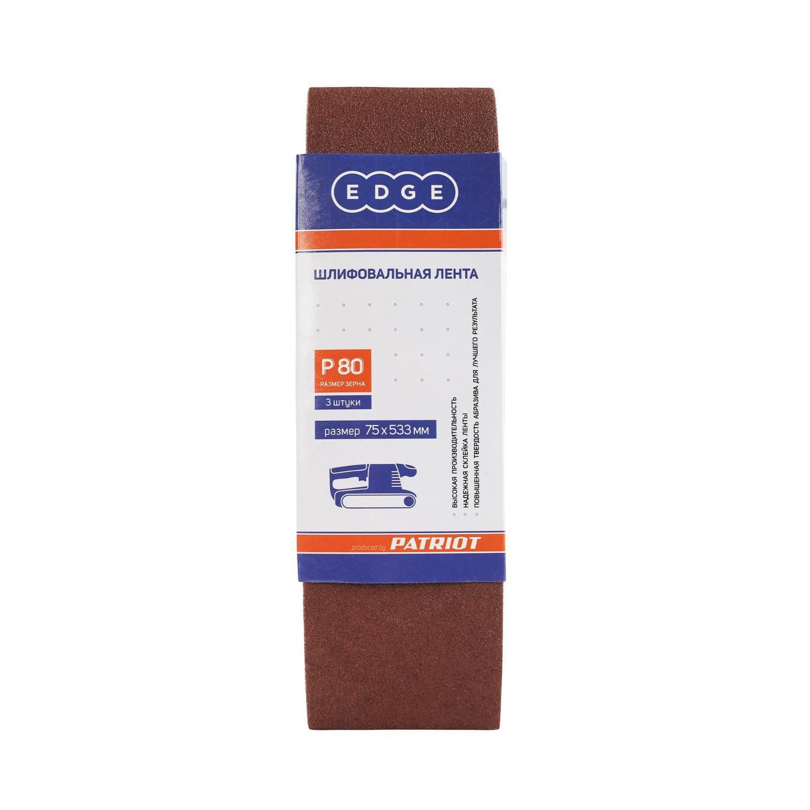 Лента абразивная EDGE by PATRIOT, 75х533 мм, Р80, 3 шт.