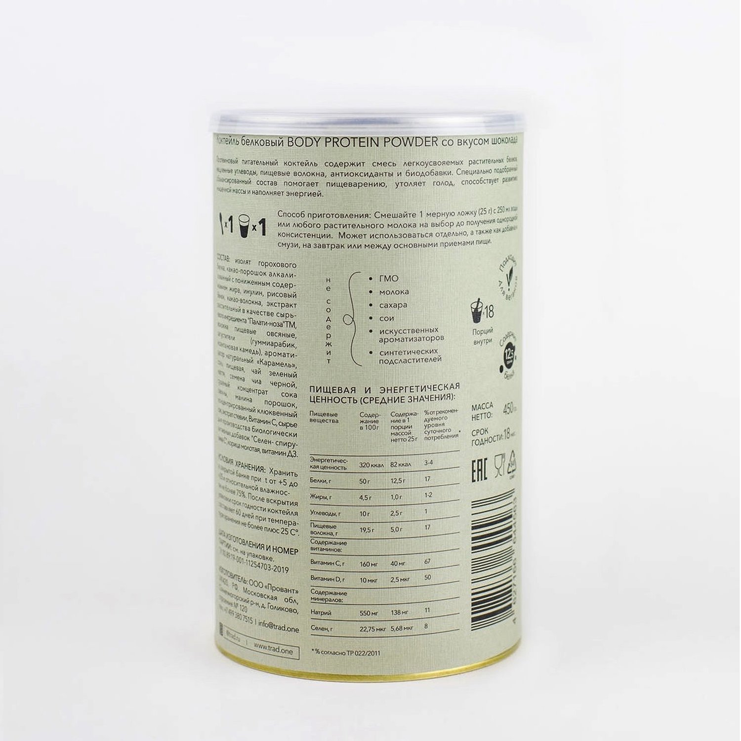 Коктейль белковый Vegan trad BODY PROTEIN POWDER со вкусом шоколада 450г 0010