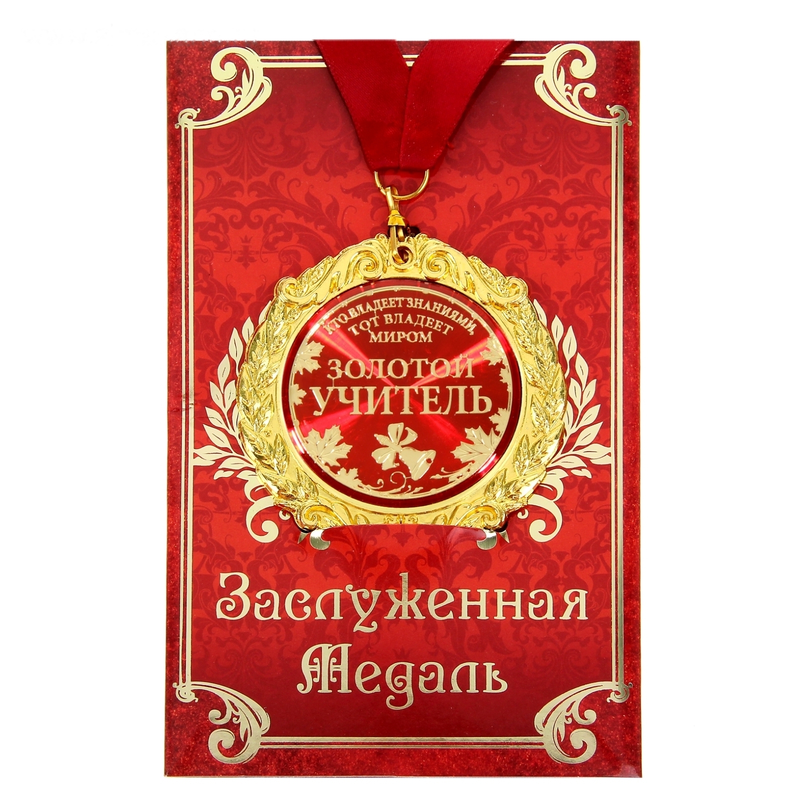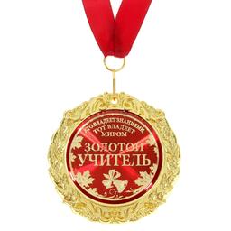 Медаль на открытке " Золотой учитель", диам 7 см