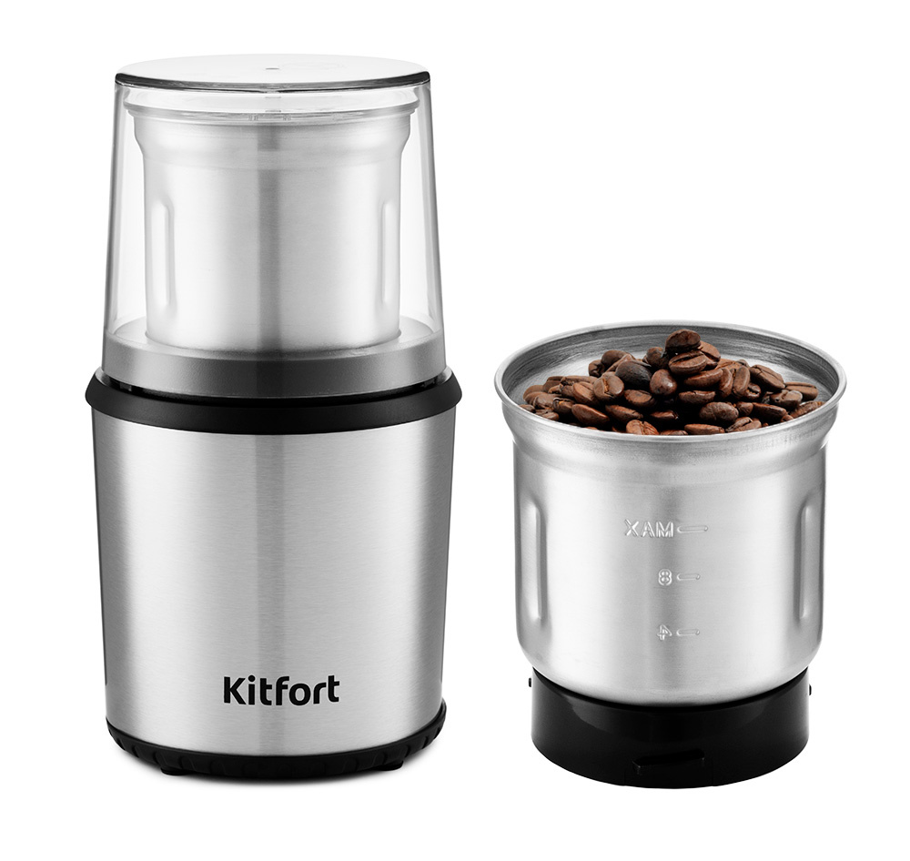 ОсобенностиКофемолка включается простым нажатием на верхнюю крышку. Степень помола зависит от продолжительности работы. Помимо верхней прозрачной крышки в комплектацию входят прозрачные крышки для каждой чаши с силиконовым уплотнителем.