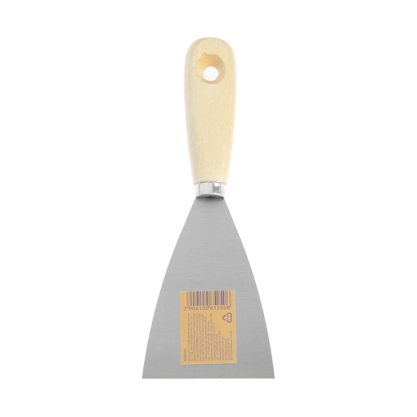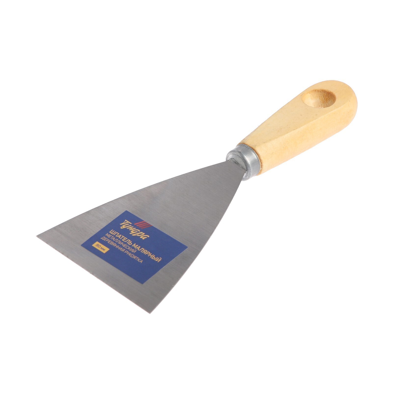 Шпатель малярный ТУНДРА, металлический, деревянная рукоятка, 80 мм