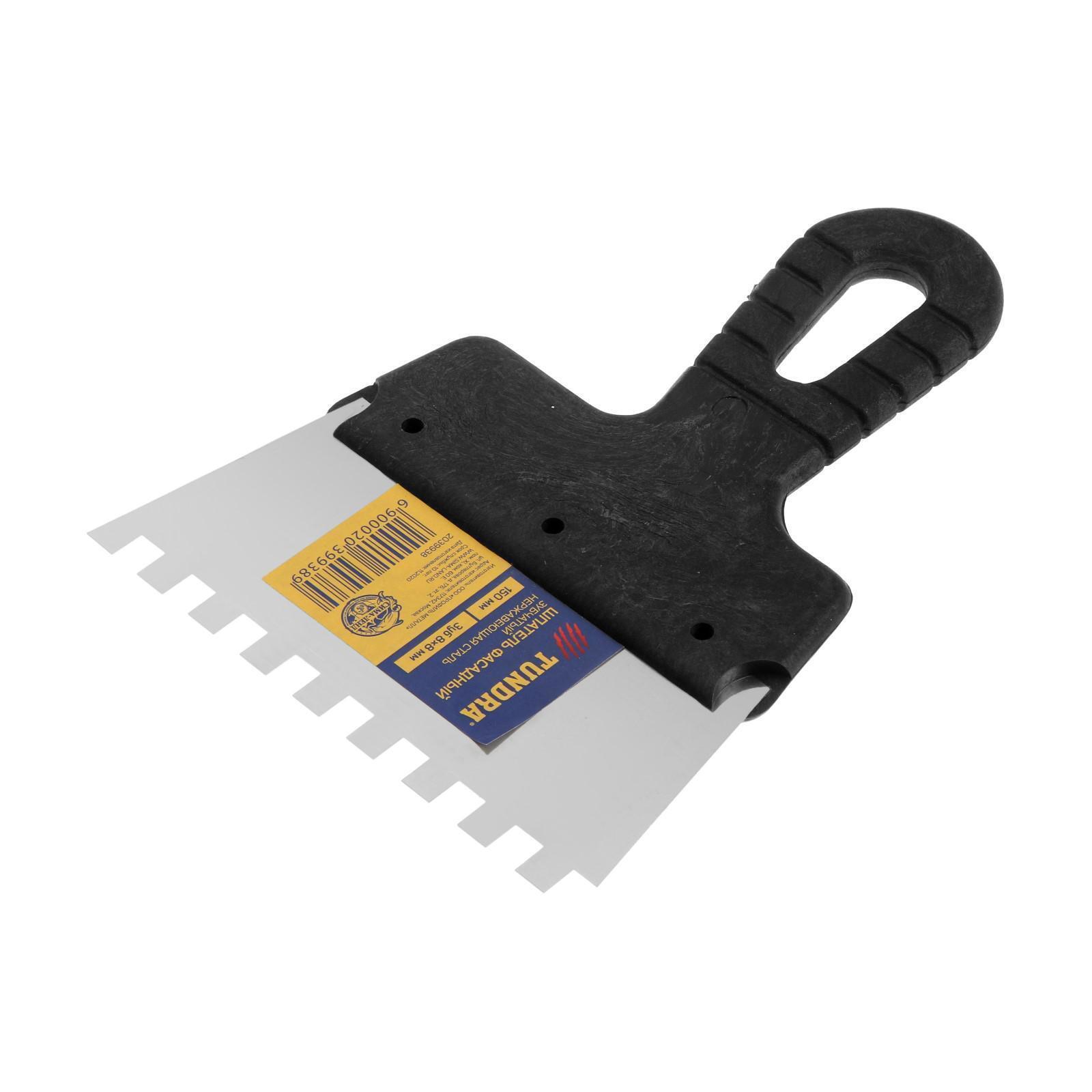 Шпатель зубчатый ТУНДРА, 150 мм, зуб 8 х 8 мм, нержавеющая сталь, пластиковая рукоятка