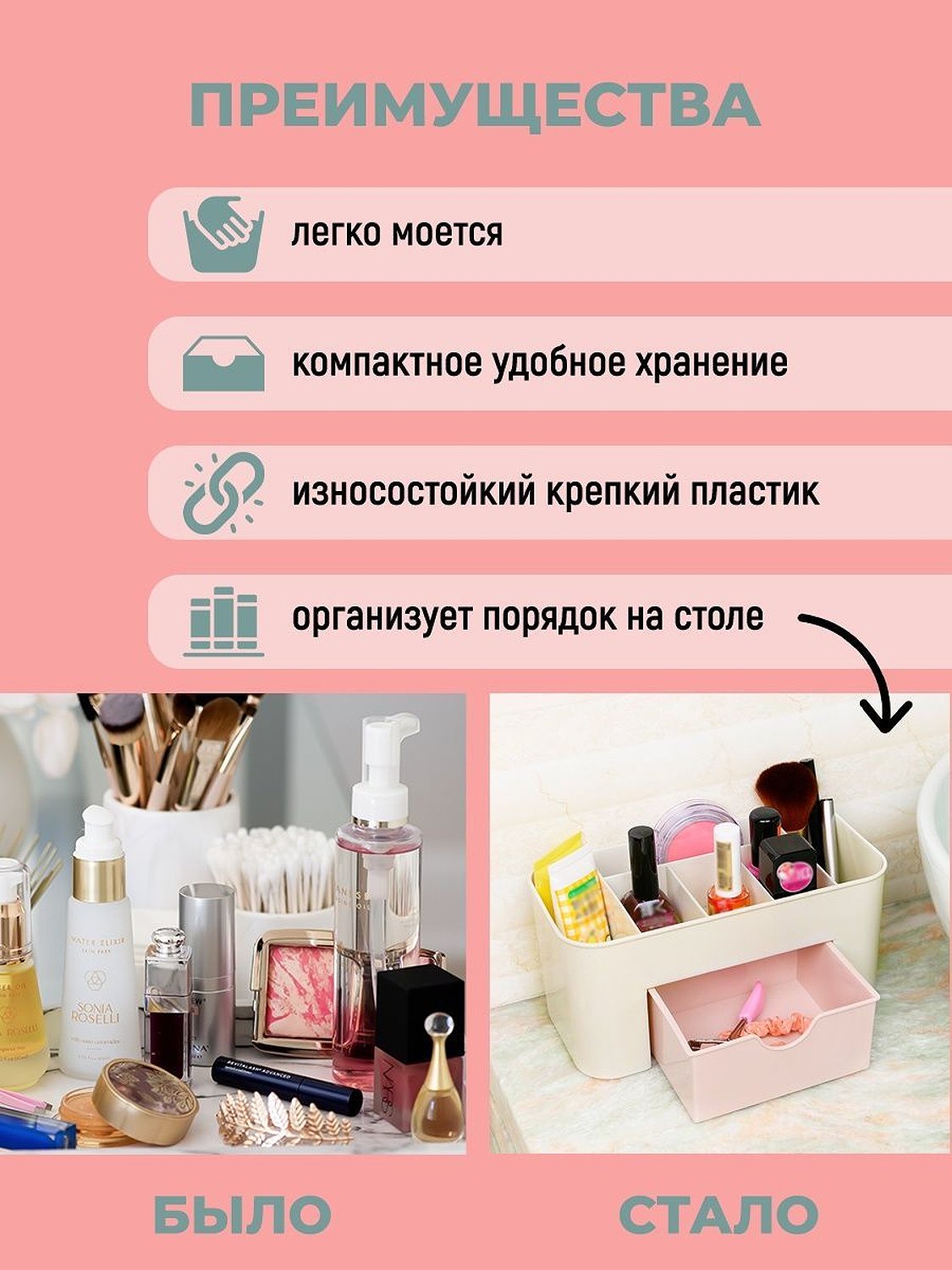 Органайзер Homsu для косметики розовый HOM-927