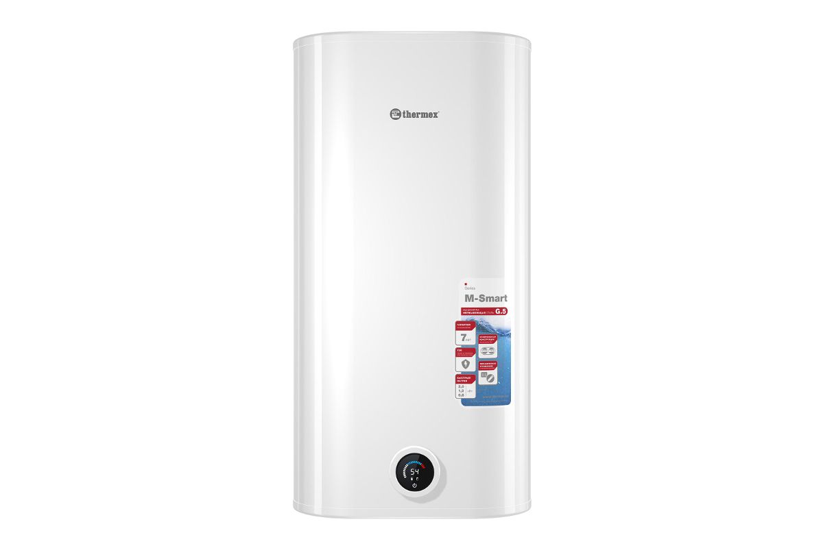 - Удобный корпус. Благодаря технологии Double Tank внутренний бак Thermex M-Smart Pro представляет собой два соединенных между собой цилиндра, что делает корпус водонагревателя узким. Плоский водонагреватель отлично подходит для компактного размещения и выглядит стильно и современно;