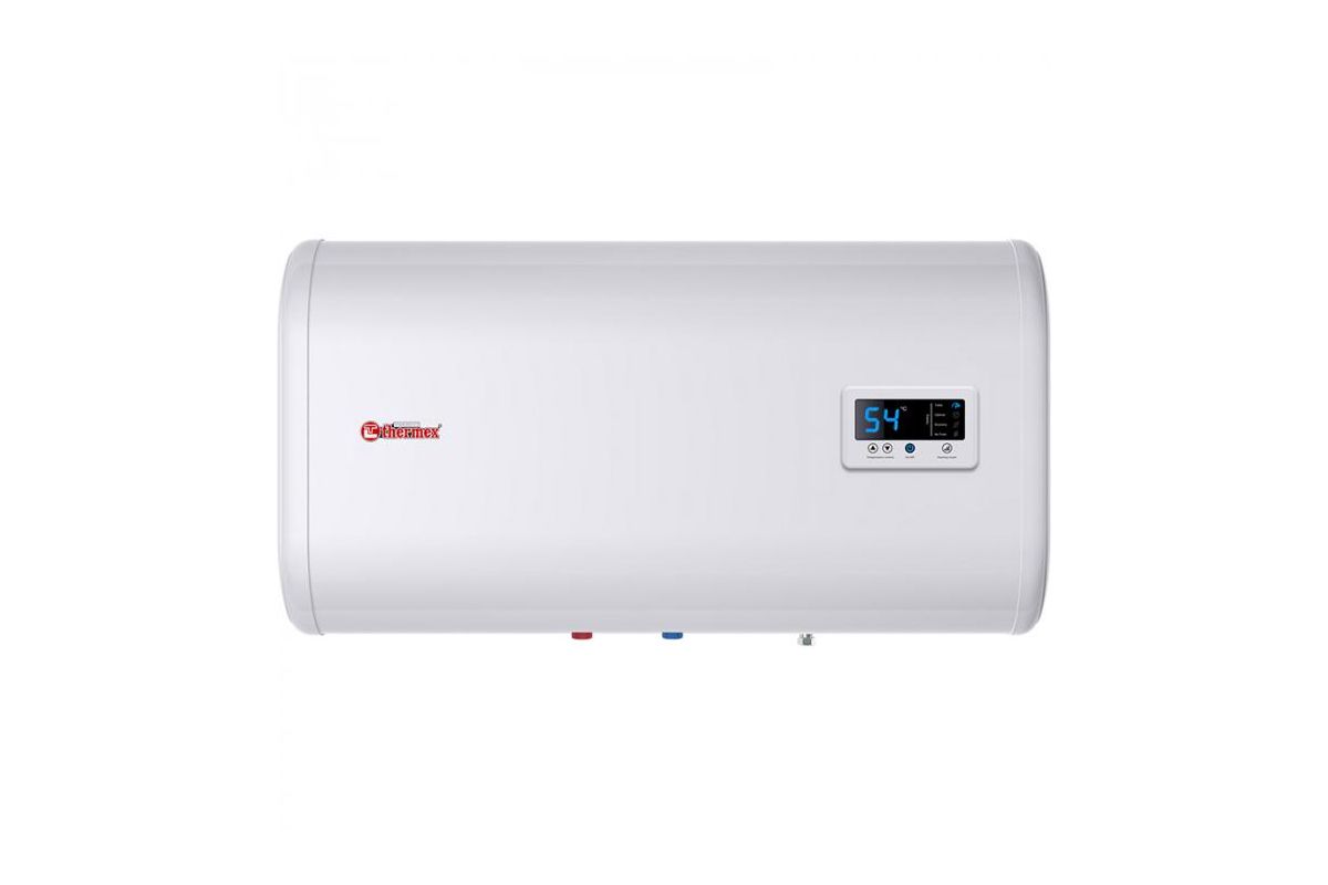 Аккумуляционный электрический водонагреватель обладает плоским корпусом из ударопрочного пластика белого цвета, что позволяет размещать агрегат в малогабаритных кухнях или ванных. Прибор оснащен двумя нагревательными элементами из меди. Водонагреватель оснащен режимом NO FROST, который используется в зимнее время года, чтобы вода внутри бака не замерзала.