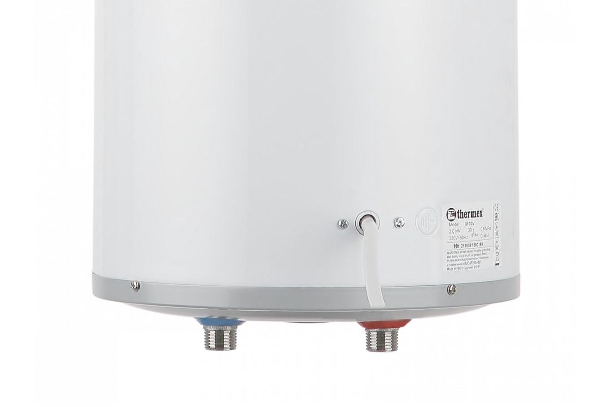 Размещаться водонагреватель Thermex RZL 30 будет вертикально. Он имеет удобную нижнюю подводку с цветовой индикацией труб, поэтому будет установлен быстро и без затруднений. В комплекте с моделью находятся крепежные анкера. Безопасность использования водонагревателя обеспечивается системой защиты от перегревания, устройством защитного отключения.