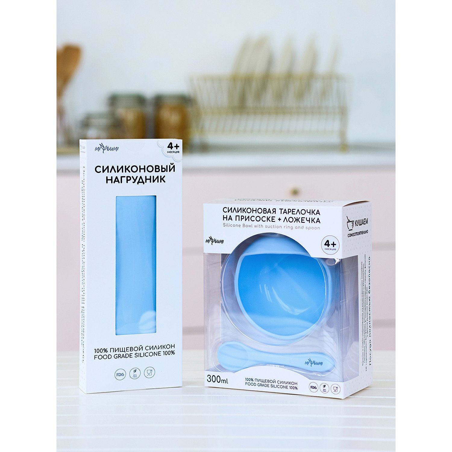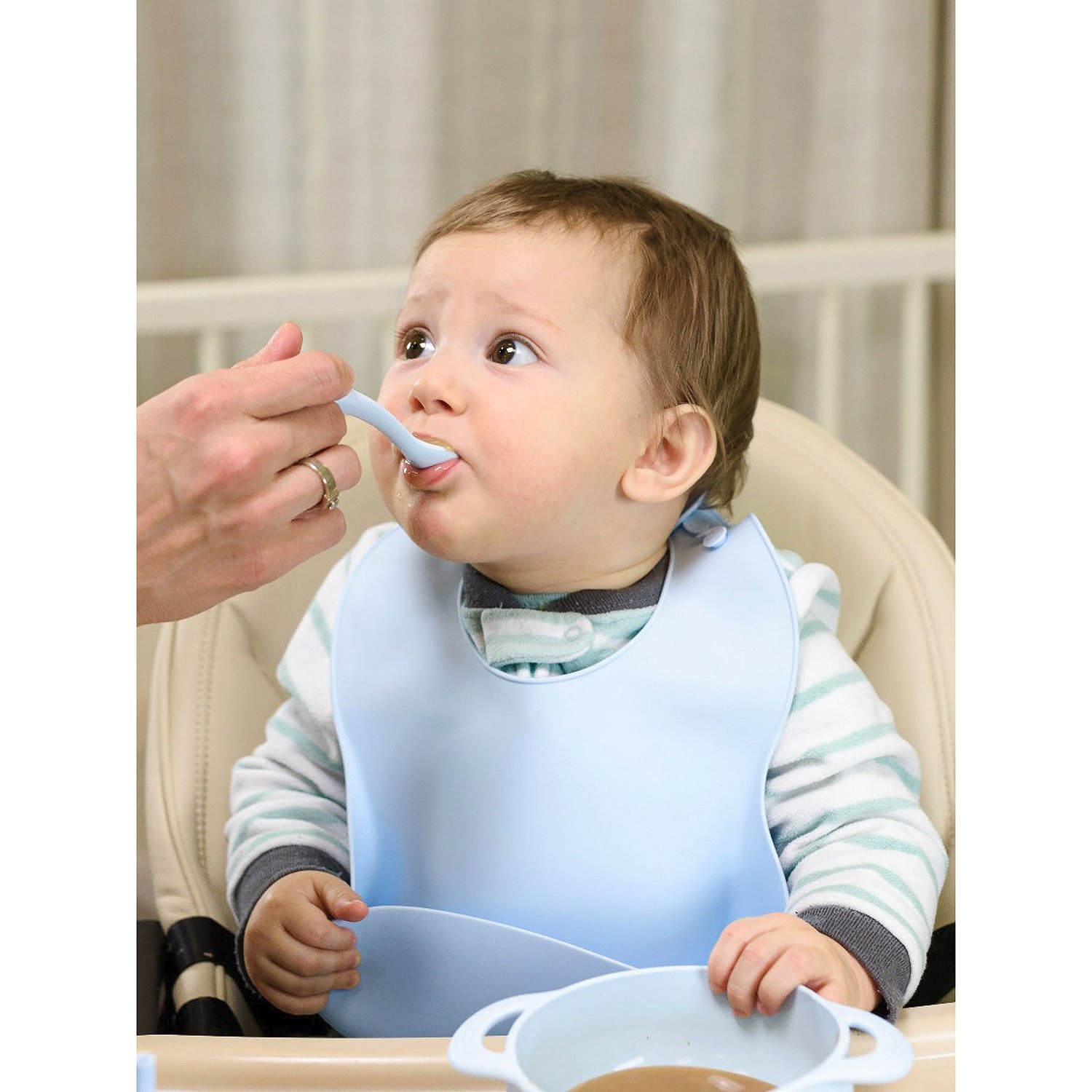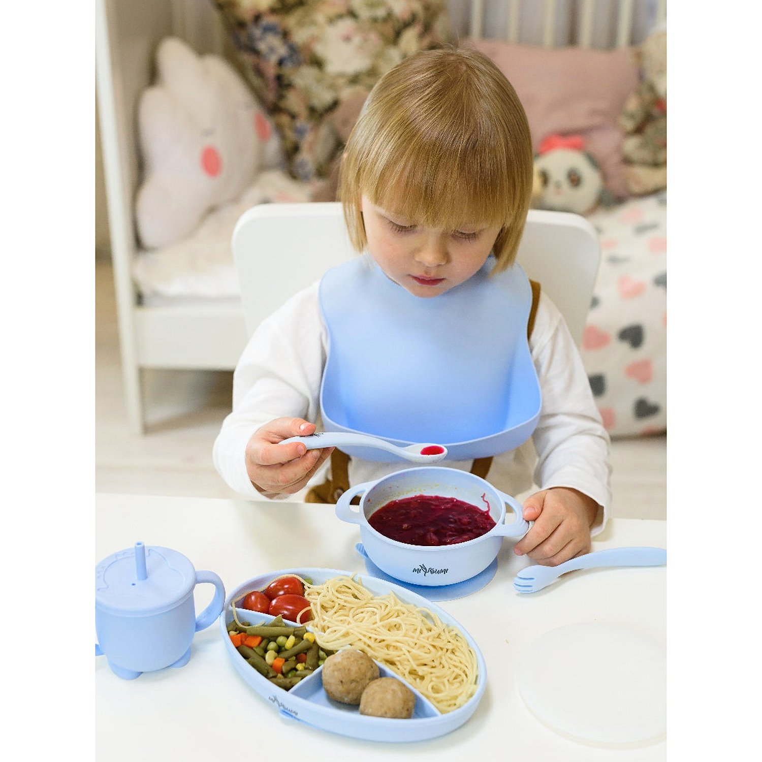 Нагрудник силиконовый Miyoumi с карманом - Baby blue N0001/231