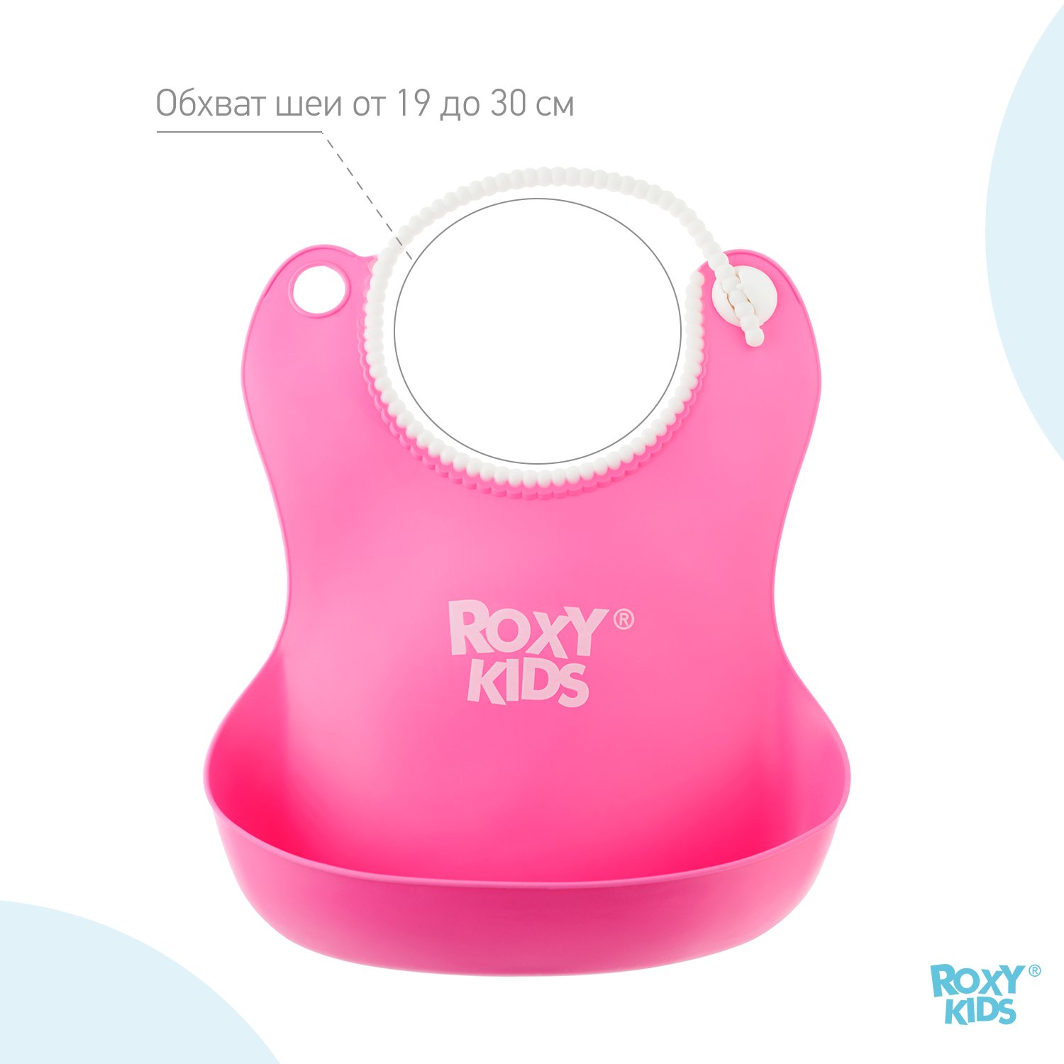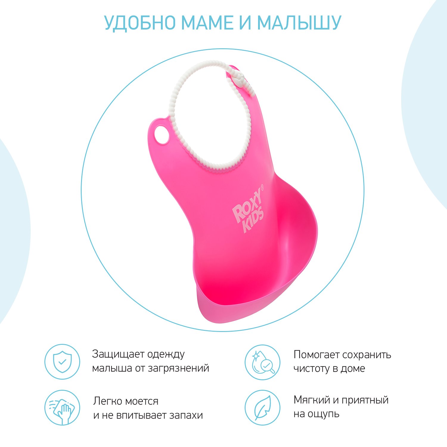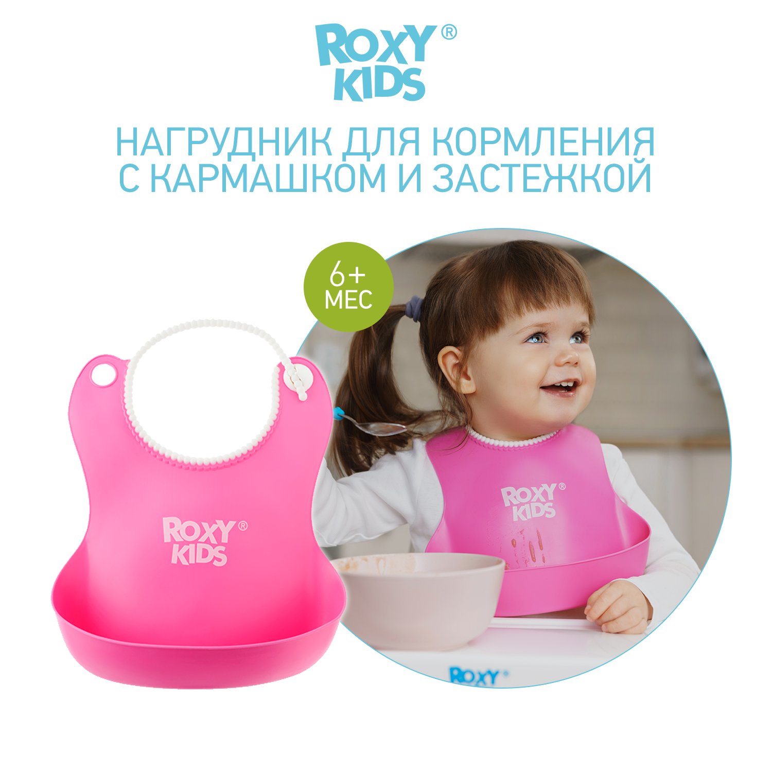 Нагрудник ROXY-KIDS для кормления мягкий с кармашком и застежкой цвет розовый RB-401-R