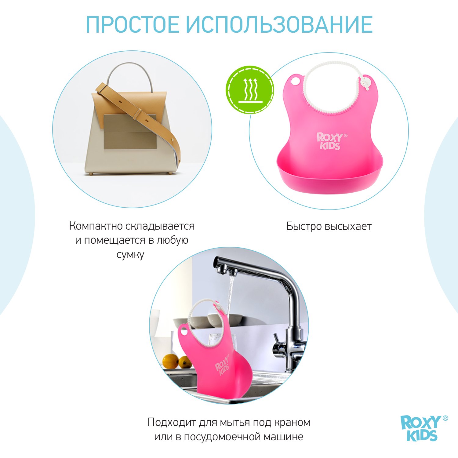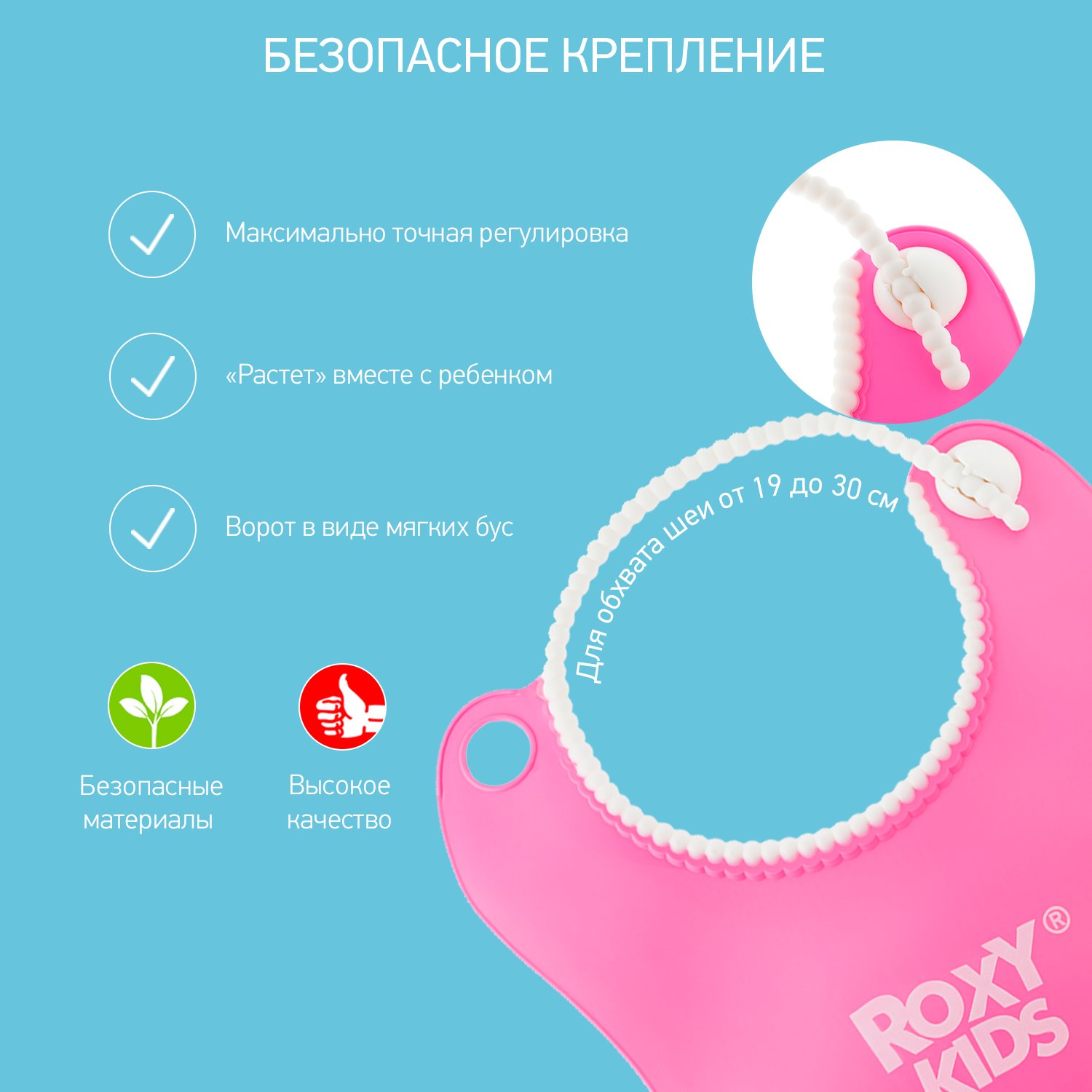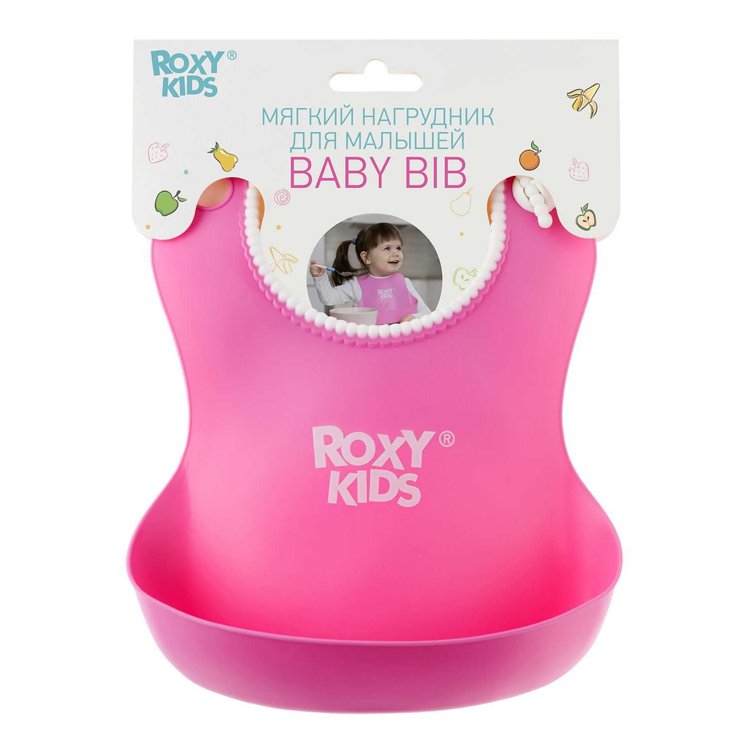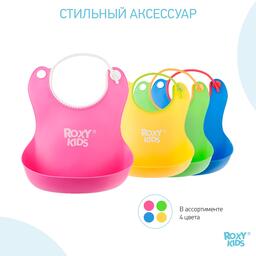 Нагрудник ROXY-KIDS для кормления мягкий с кармашком и застежкой цвет розовый RB-401-R
