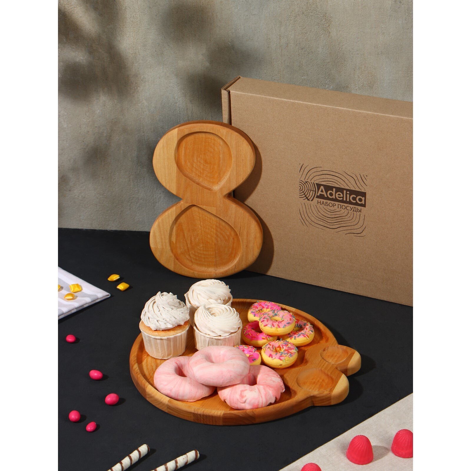 Подарочный набор посуды Adelica «8 Марта», поднос 30 см, менажница на 2 секции, в подарочной коробке