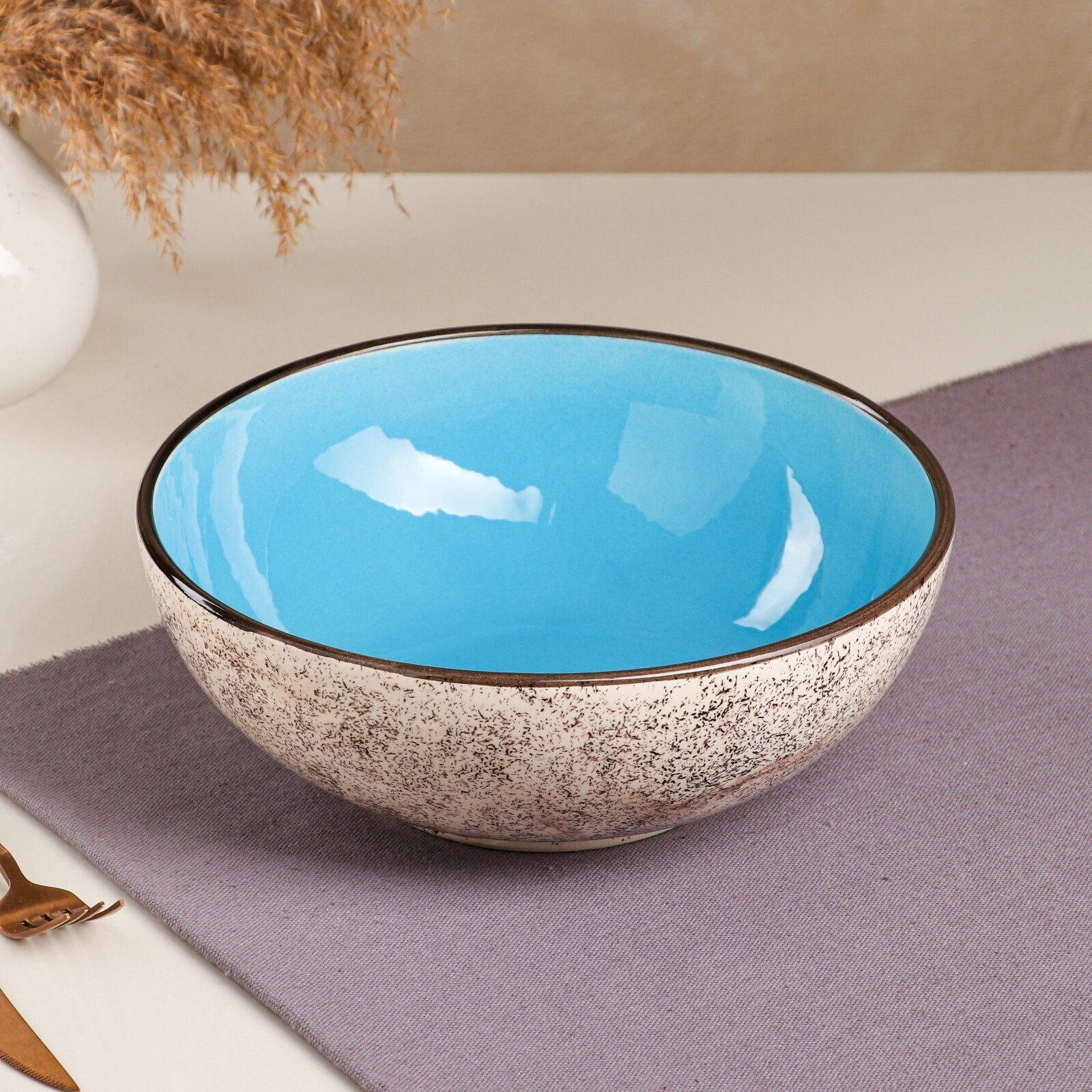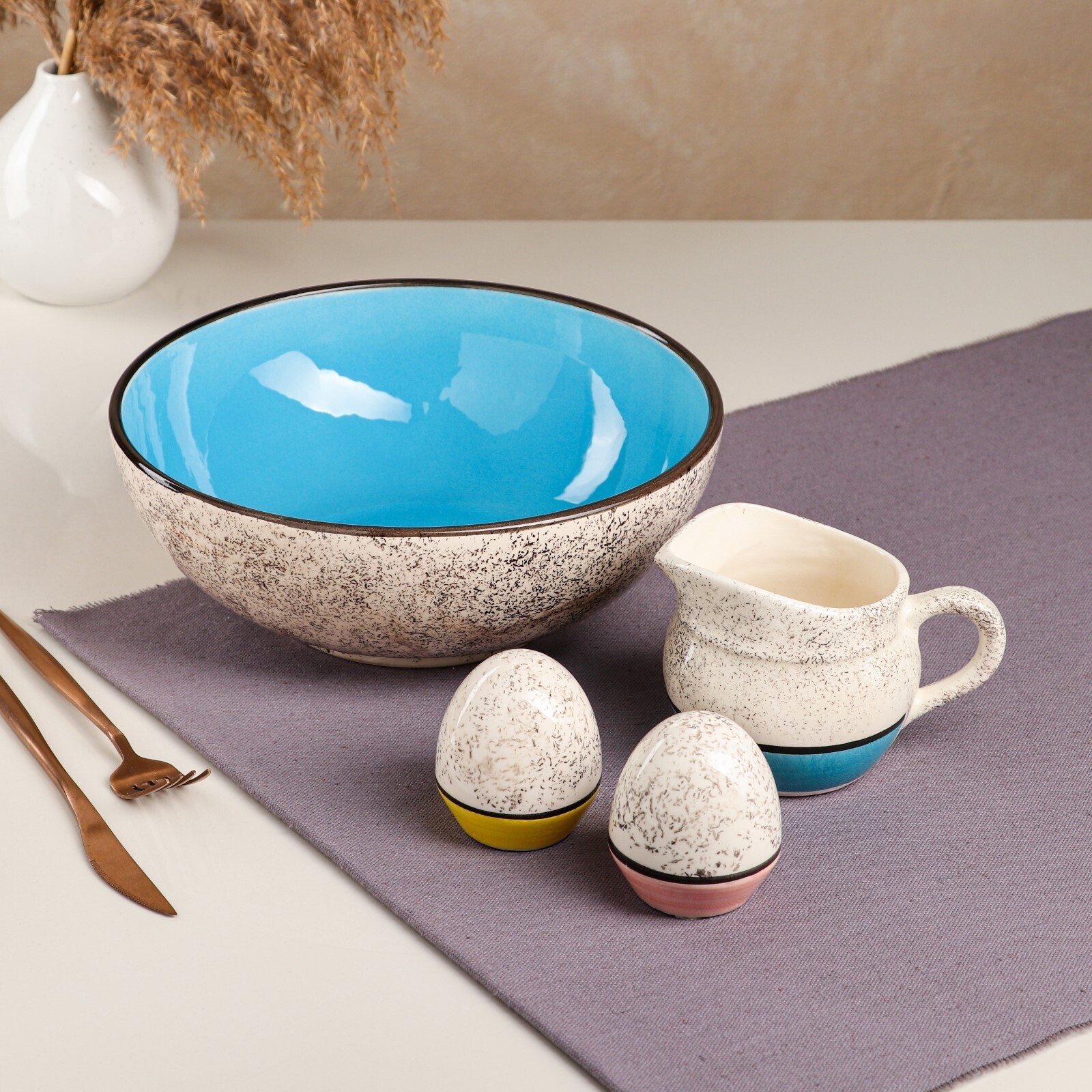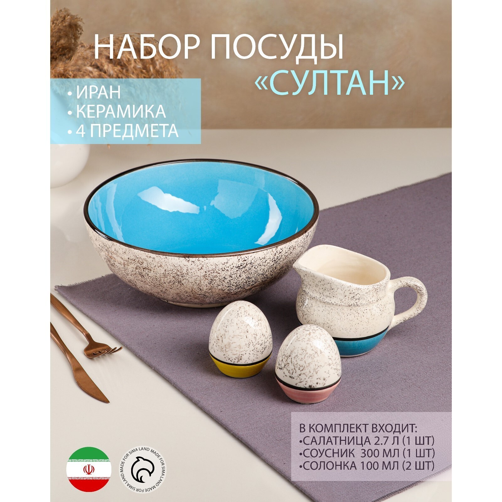 Набор посуды "Султан", керамика, желтый, синий, розовый, 4 предмета: салатница 2.7 л, соусник 300 мл, солонка 100 мл, Иран