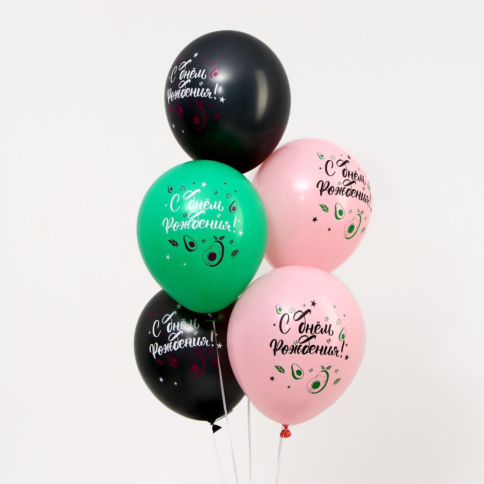 Шар латексный 12" «С Днём Рождения», авокадо, набор 5 шт.