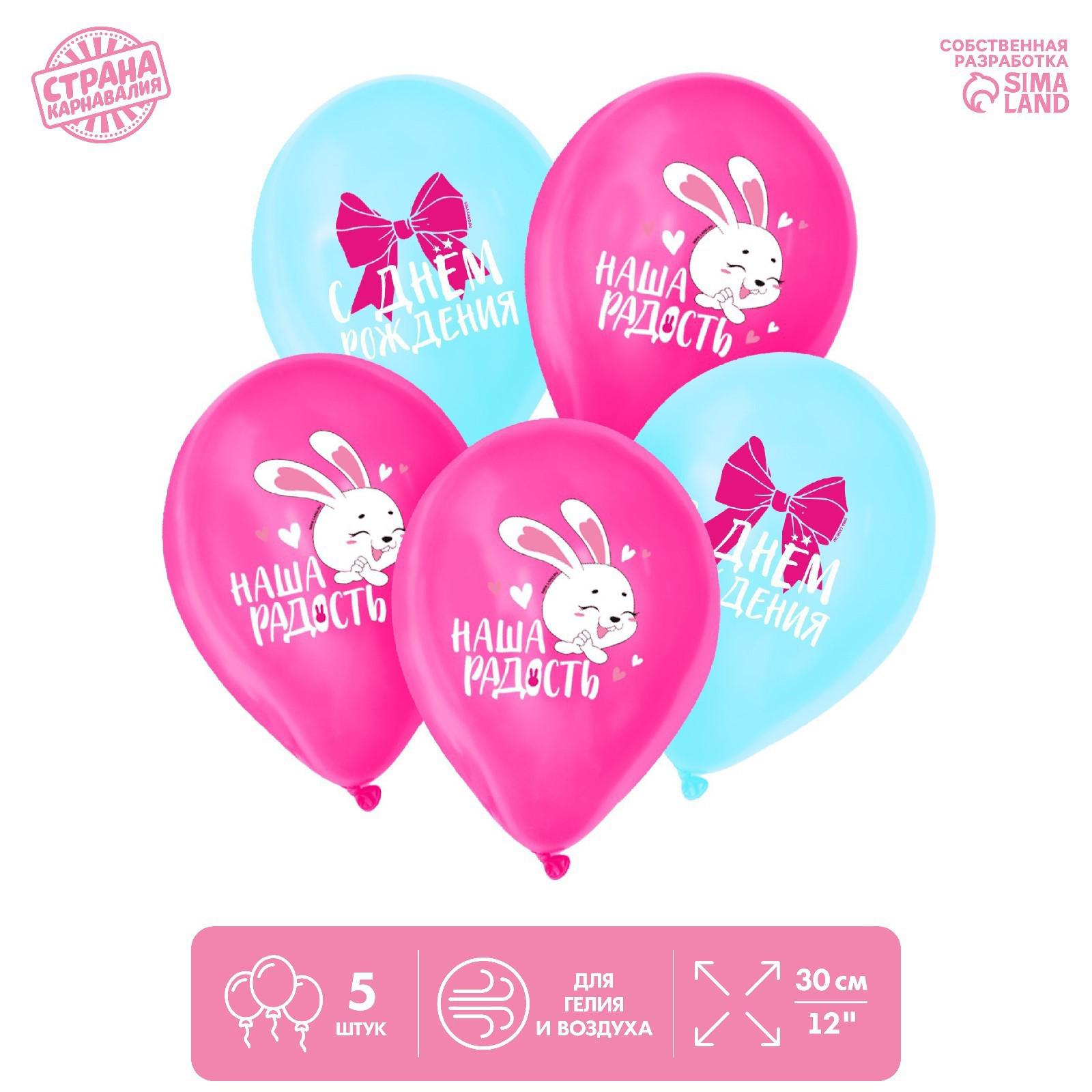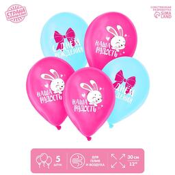 Шар латексный 12" «С Днём Рождения», бантик, 5 шт.