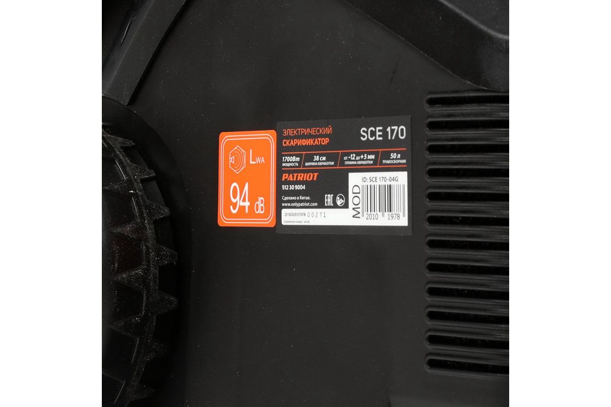 Скарификатор PATRIOT SCE 170 электрич, 1.7кВт, ширина 380мм, травосборн пластик 50л, колеса 140/14