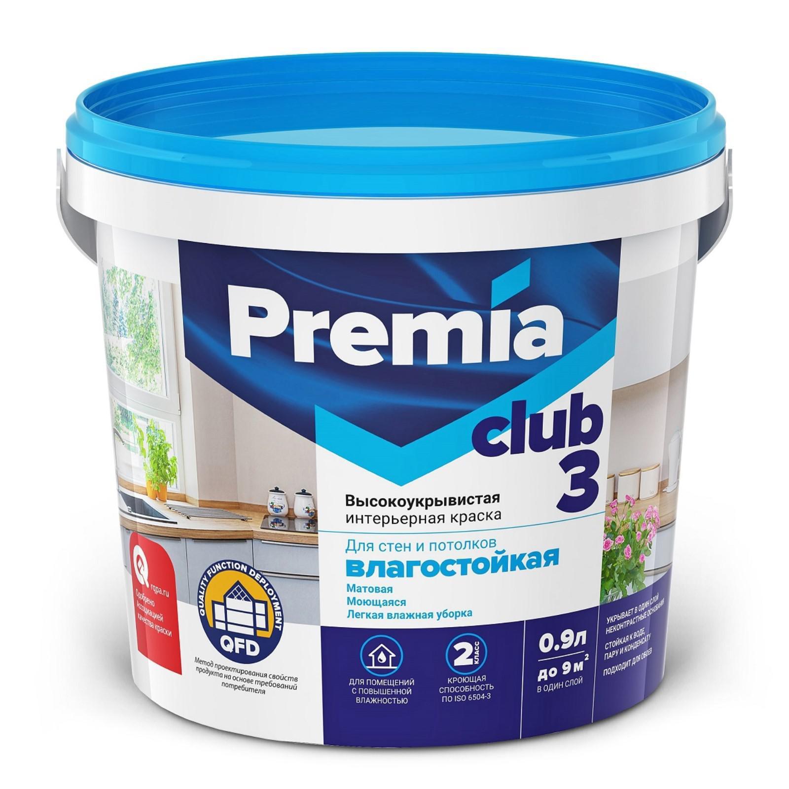 Краска для стен и потолков PREMIA белая влагостойкая, 0,9л