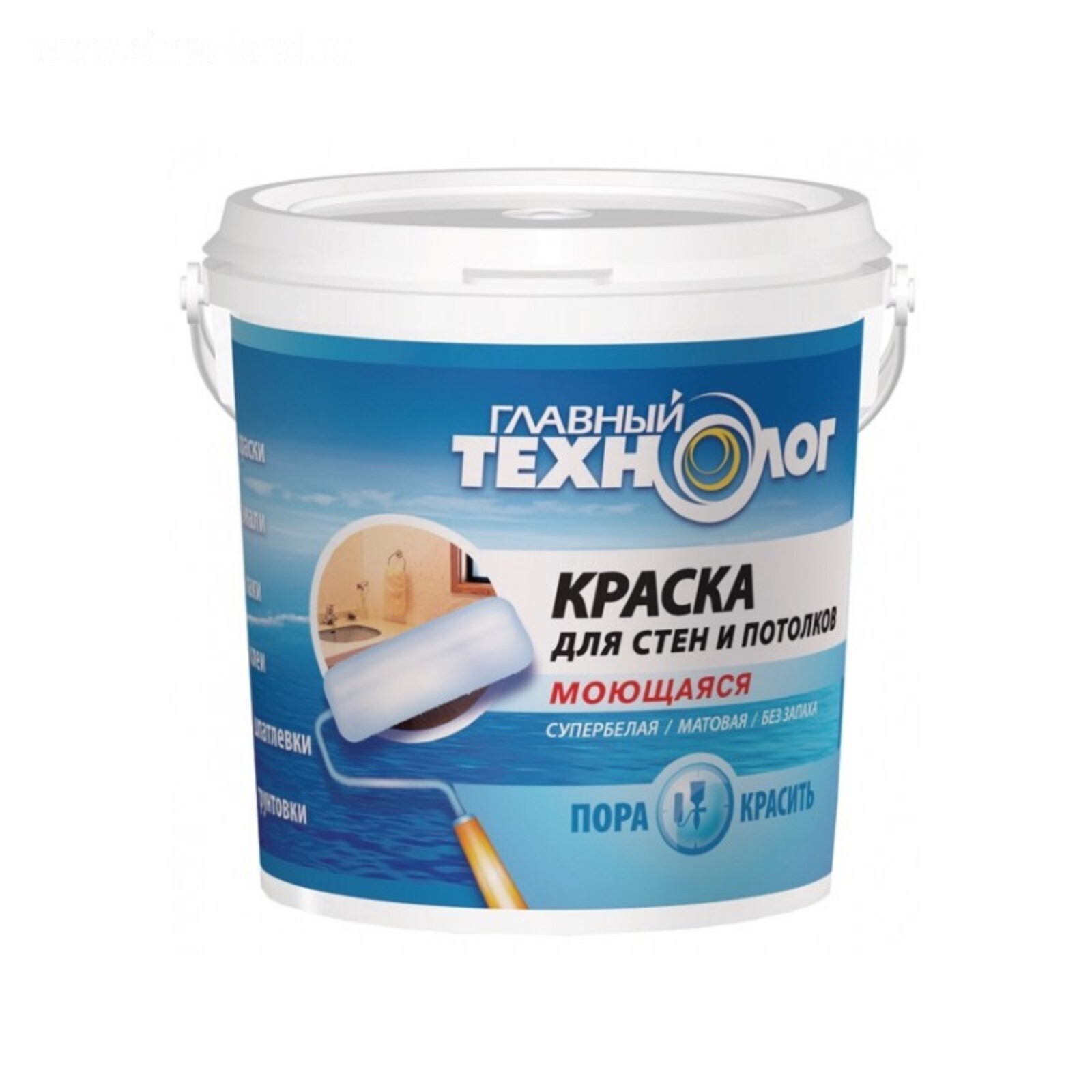 Краска для стен и потолков моющая Главный технолог супербелая 1,4кг