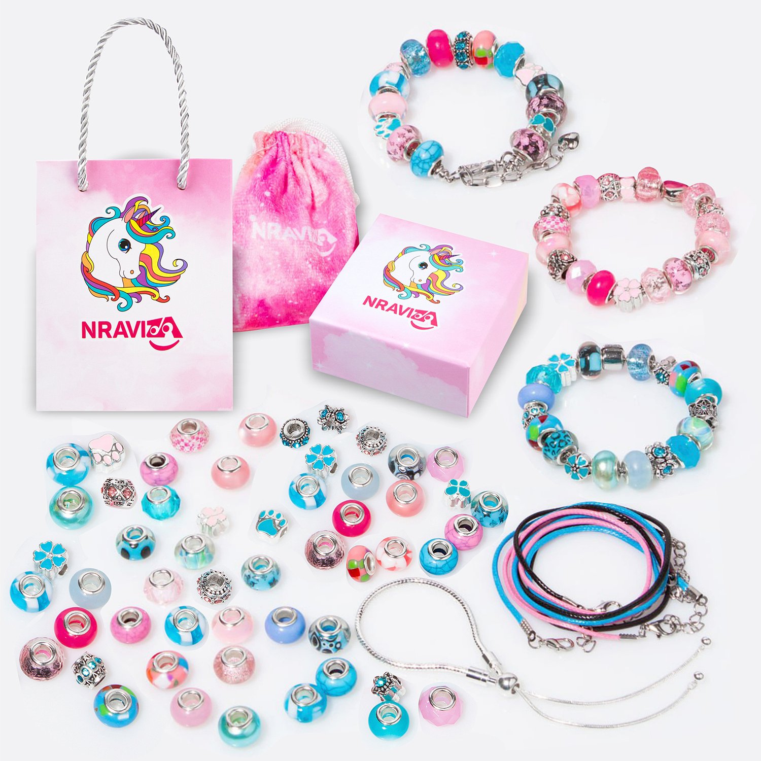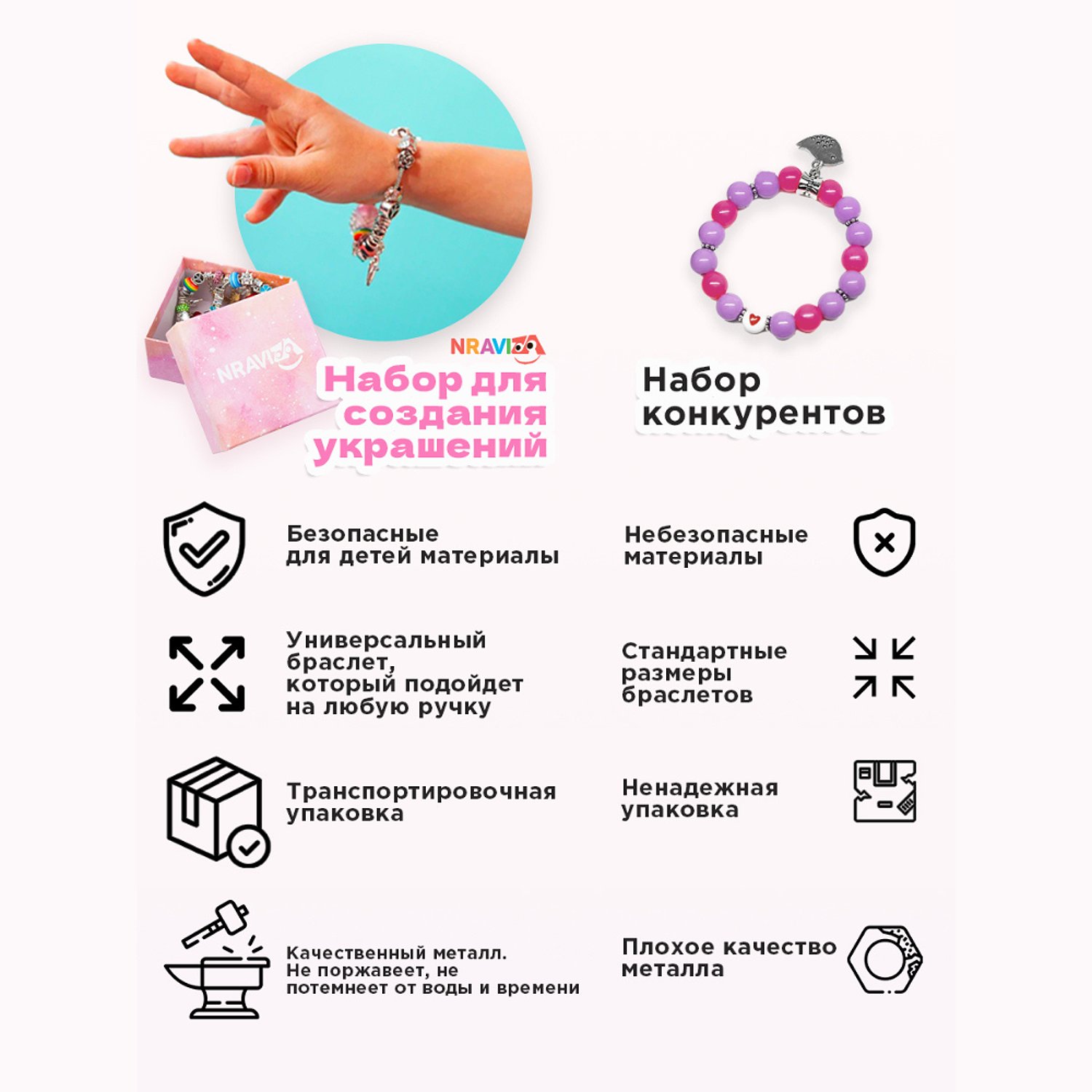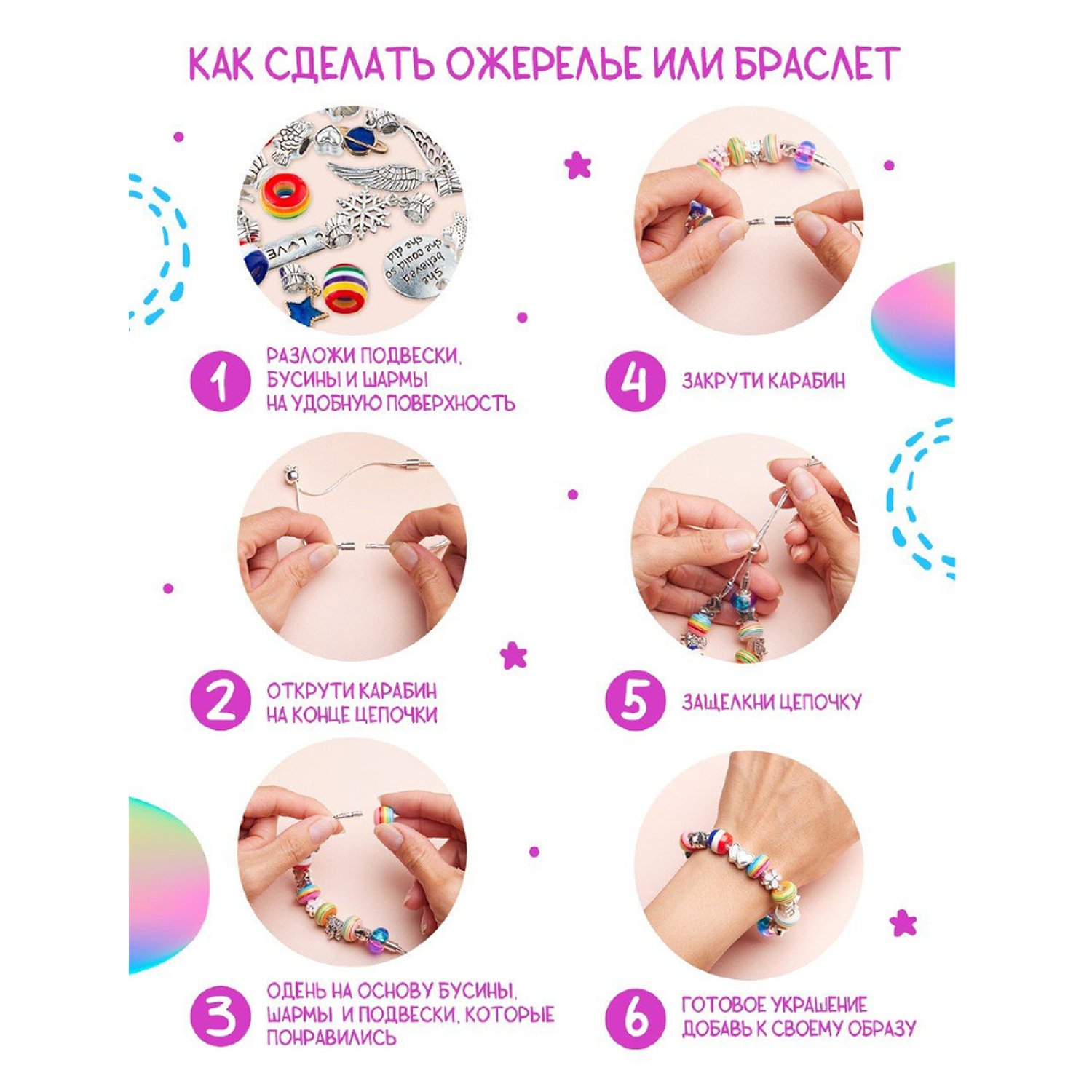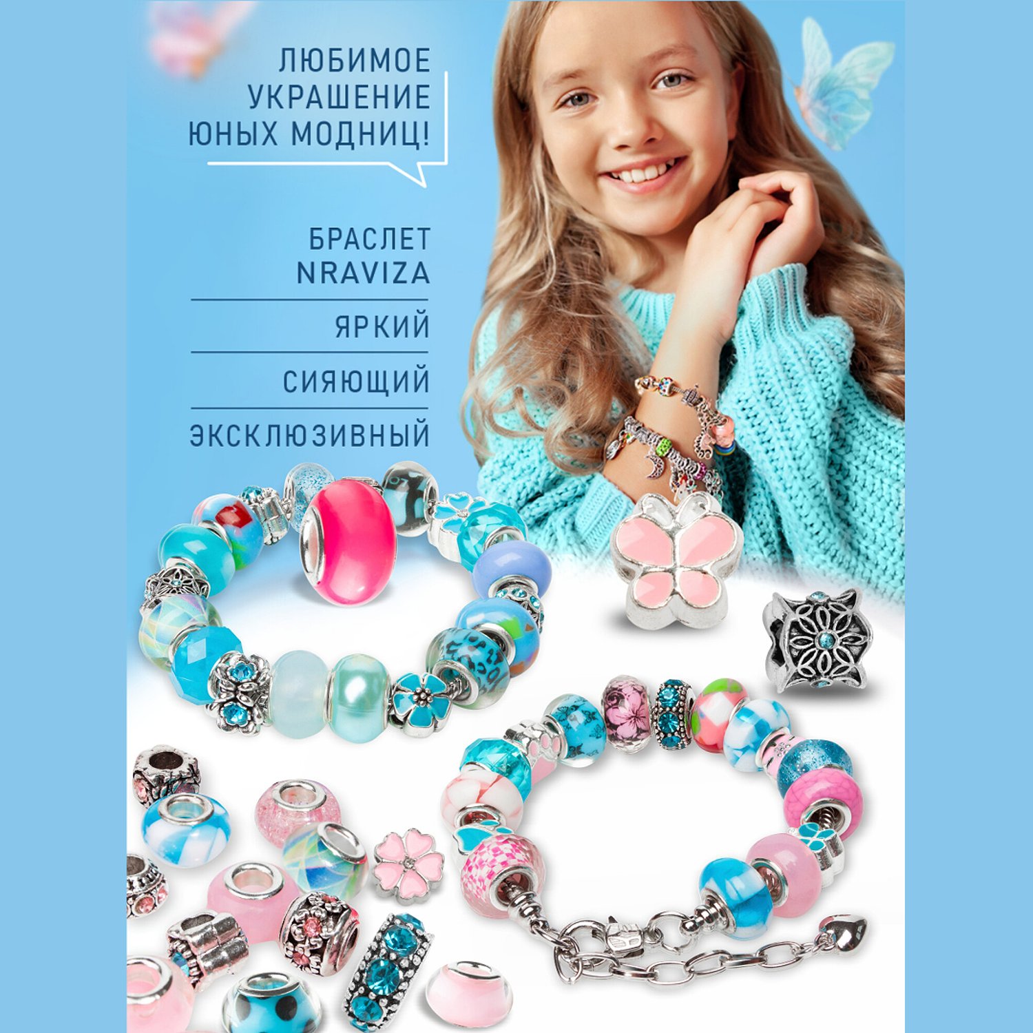 Набор для создания украшений NRAVIZA Детям розовый+голубой для изготовления браслетов NR0025