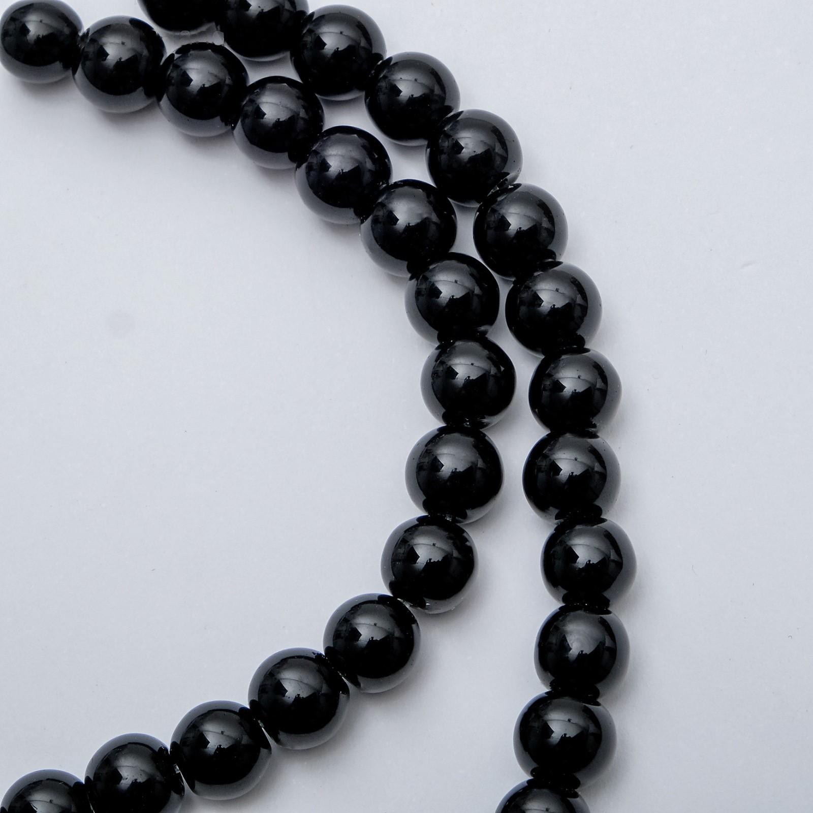 Бусины на нити шар №8 "Агат черный" (50 бусины)