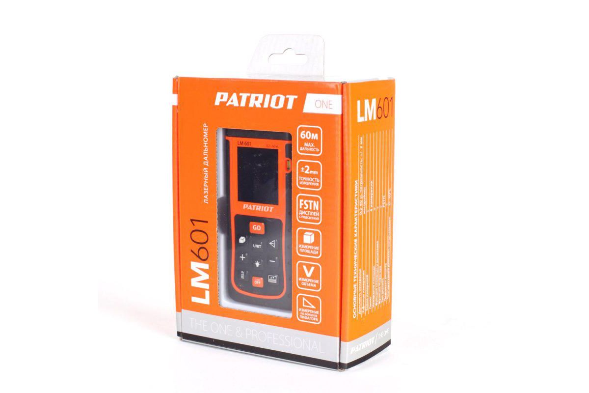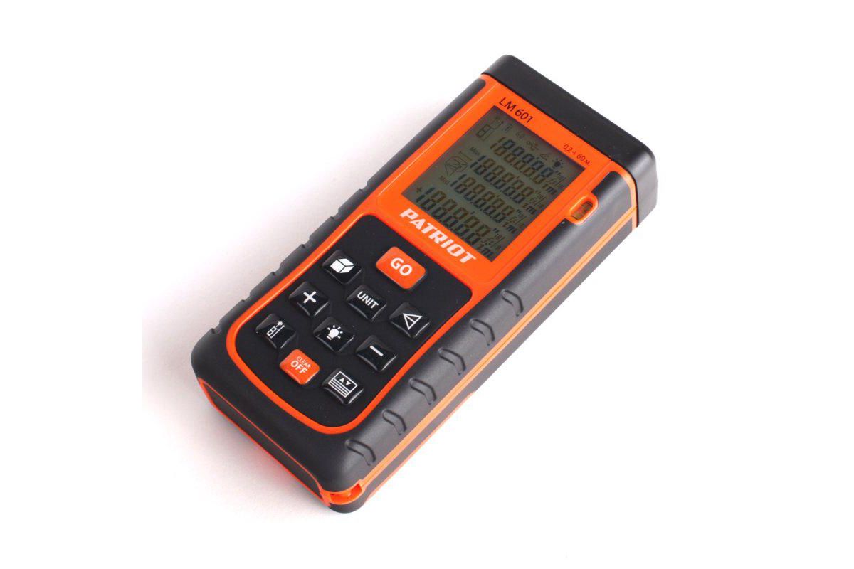 Дальномер лазерный PATRIOT LM601, макс. дистанция 60 метров, измерение площади, объема, подсветка, память 99 изм., чехол в комплекте