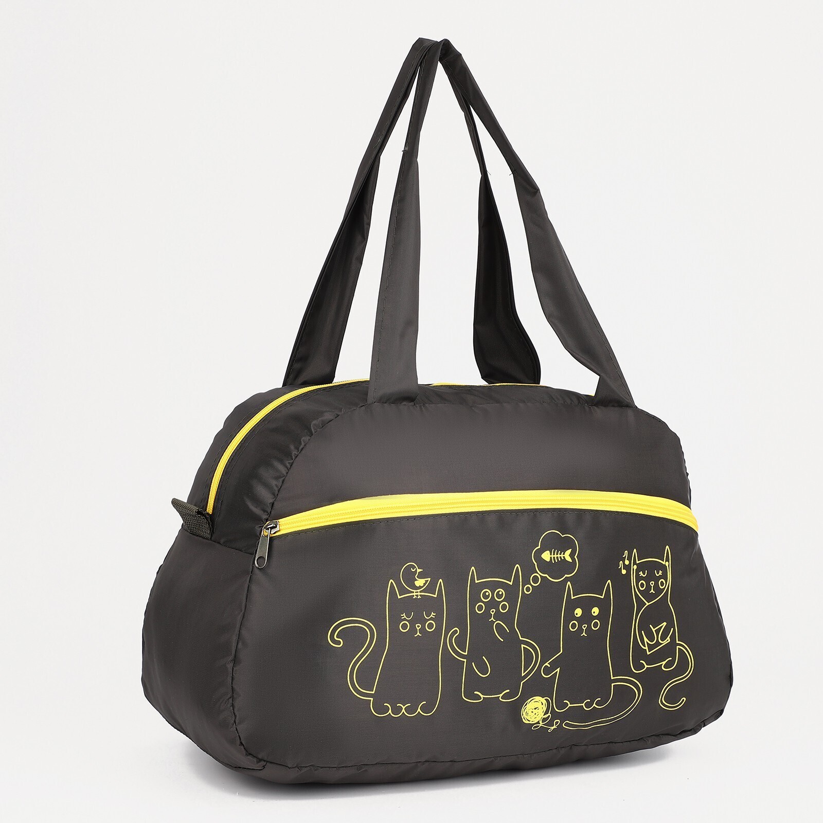 Сумка спорт С113/1, 42*22*27, отд на молнии, н/карман, кошки хаки/желтый