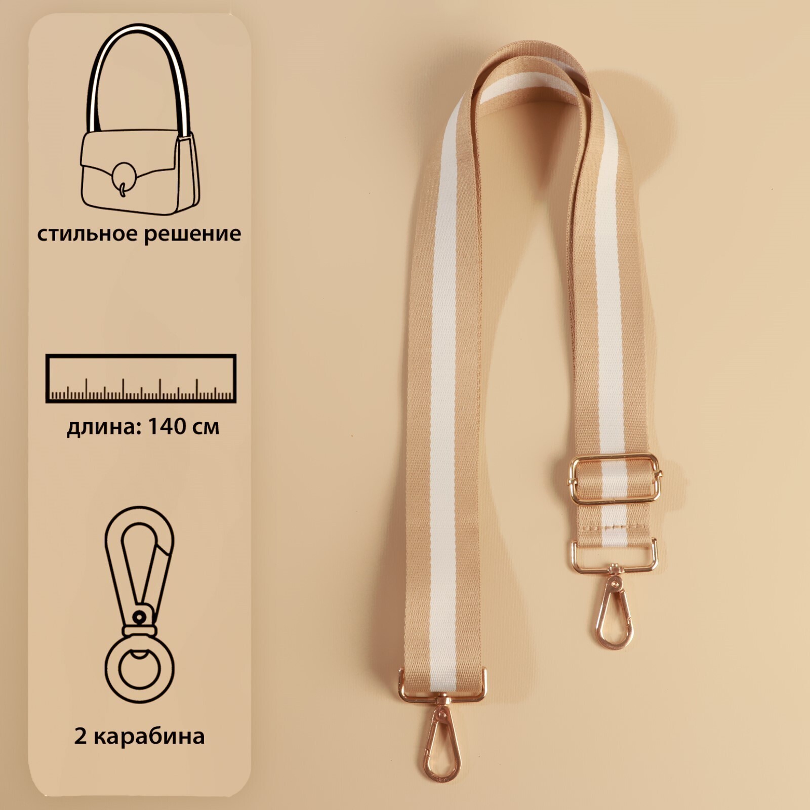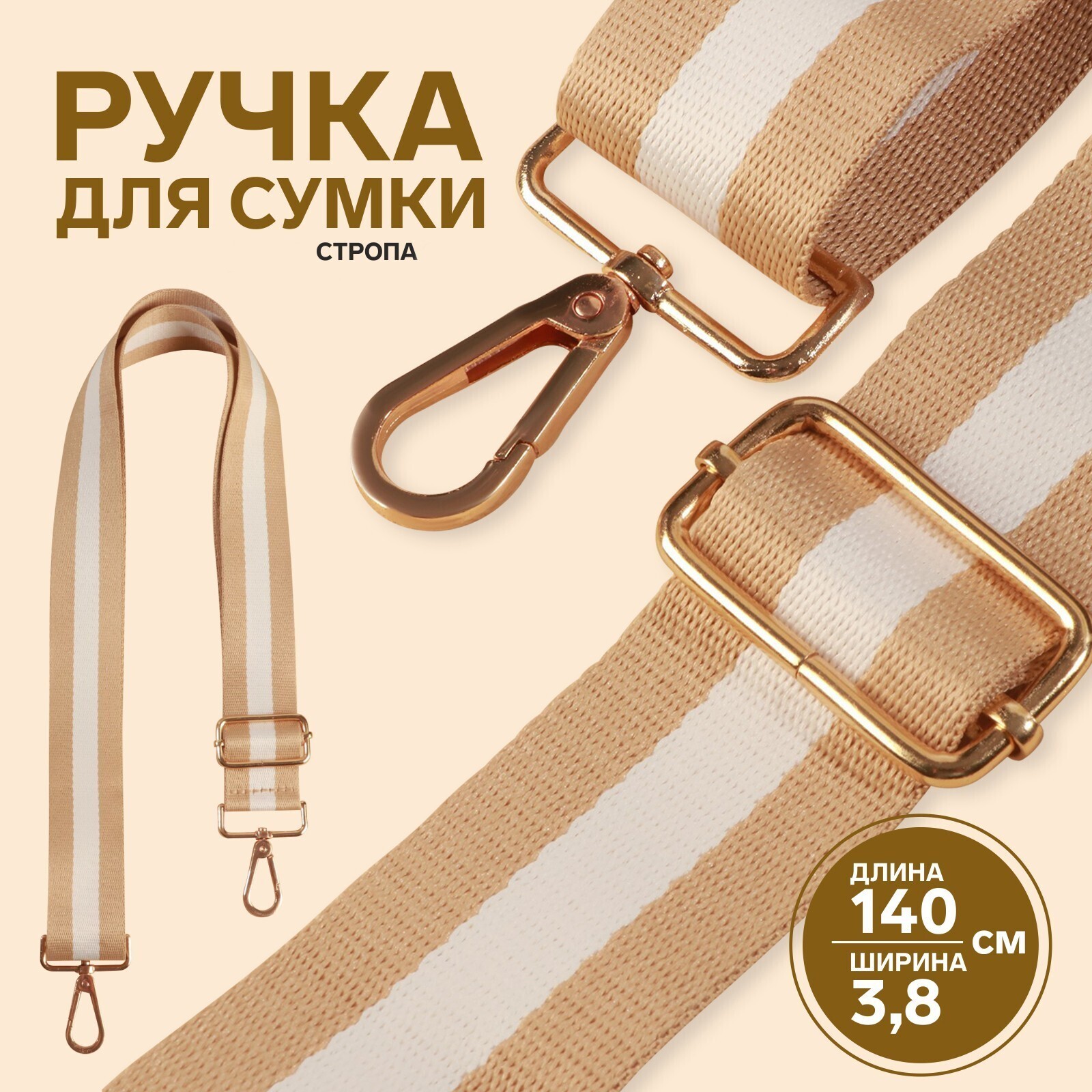 Ручка для сумки, стропа, 140 × 3,8 см, цвет бежевый/белый