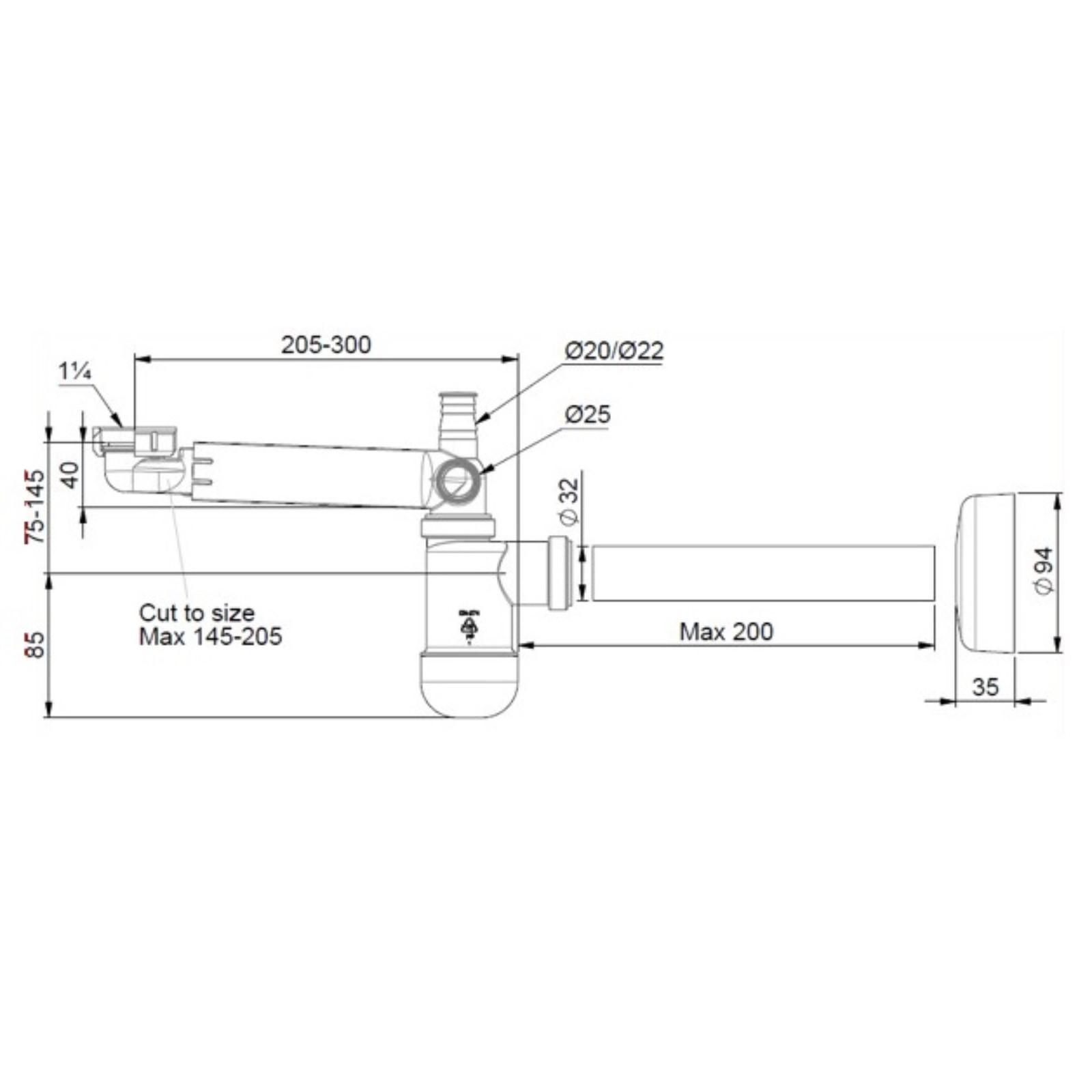 Сифон для раковины PREVEX Preloc PR3-N4N35-001, d=32/50 мм, подкл. к стир. машине/переливу