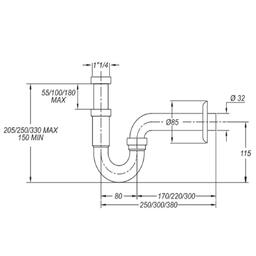 Сифон для раковины и биде BONOMINI 0220ZX22K7WZ, трубный, 1 1/4" х 120 мм, нерж. сталь, хром