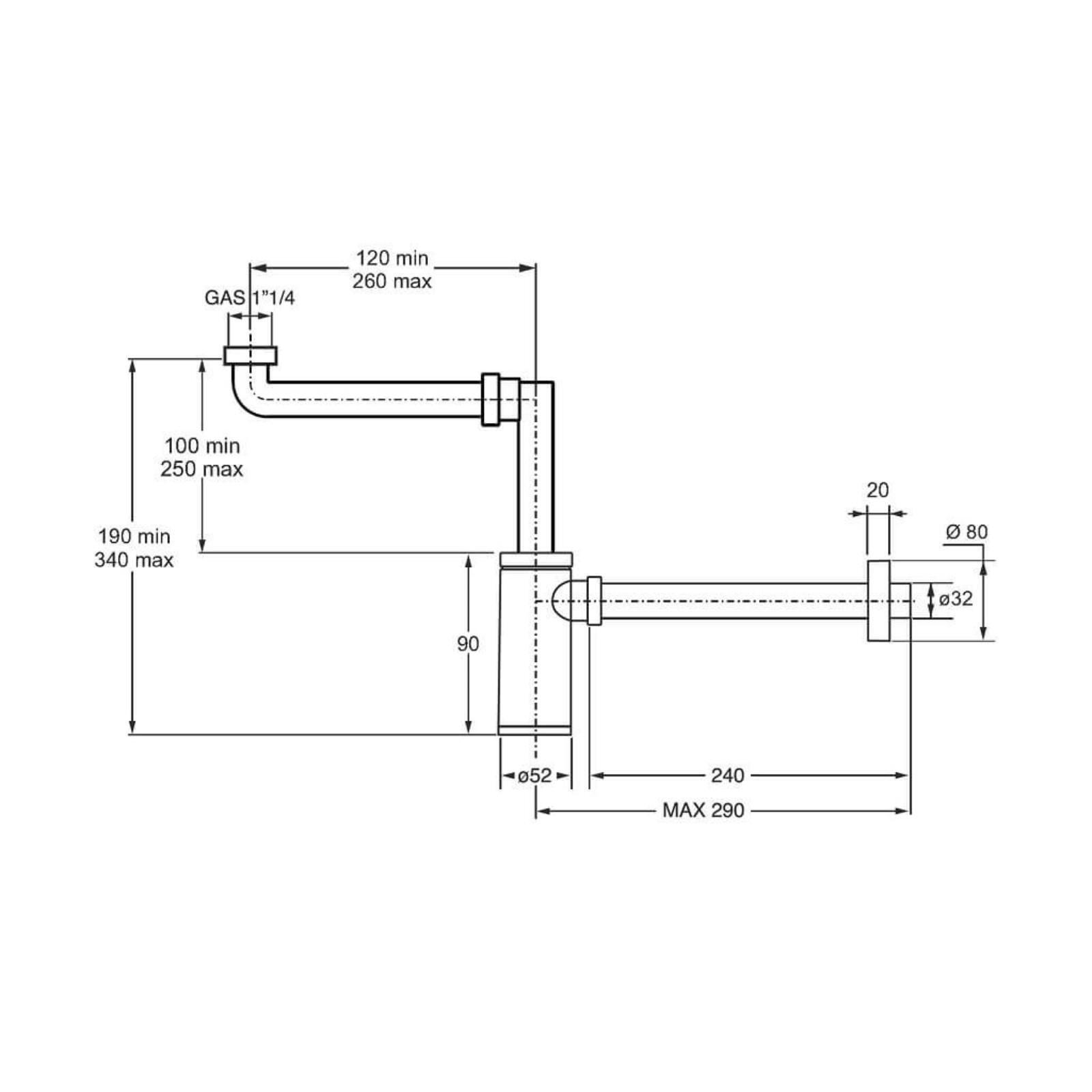 Сифон для раковины BONOMINI 2795SP32B0WZ, накидная гайка 1 1/4", круглый, d=32 мм, белый