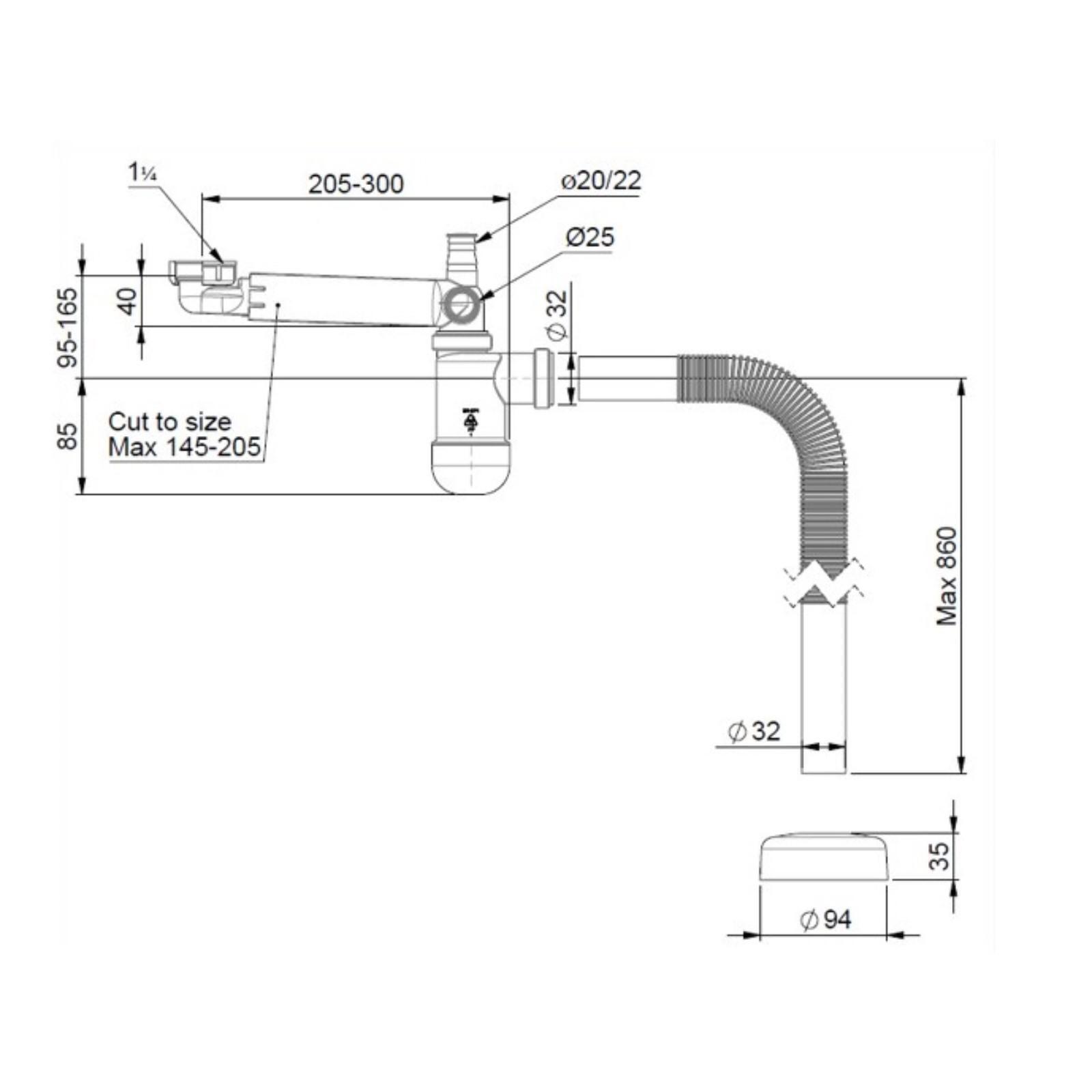 Сифон для раковины PREVEX Preloc PR3-N4NF3-001, d=32/40 мм, подкл. к стир. машине/переливу