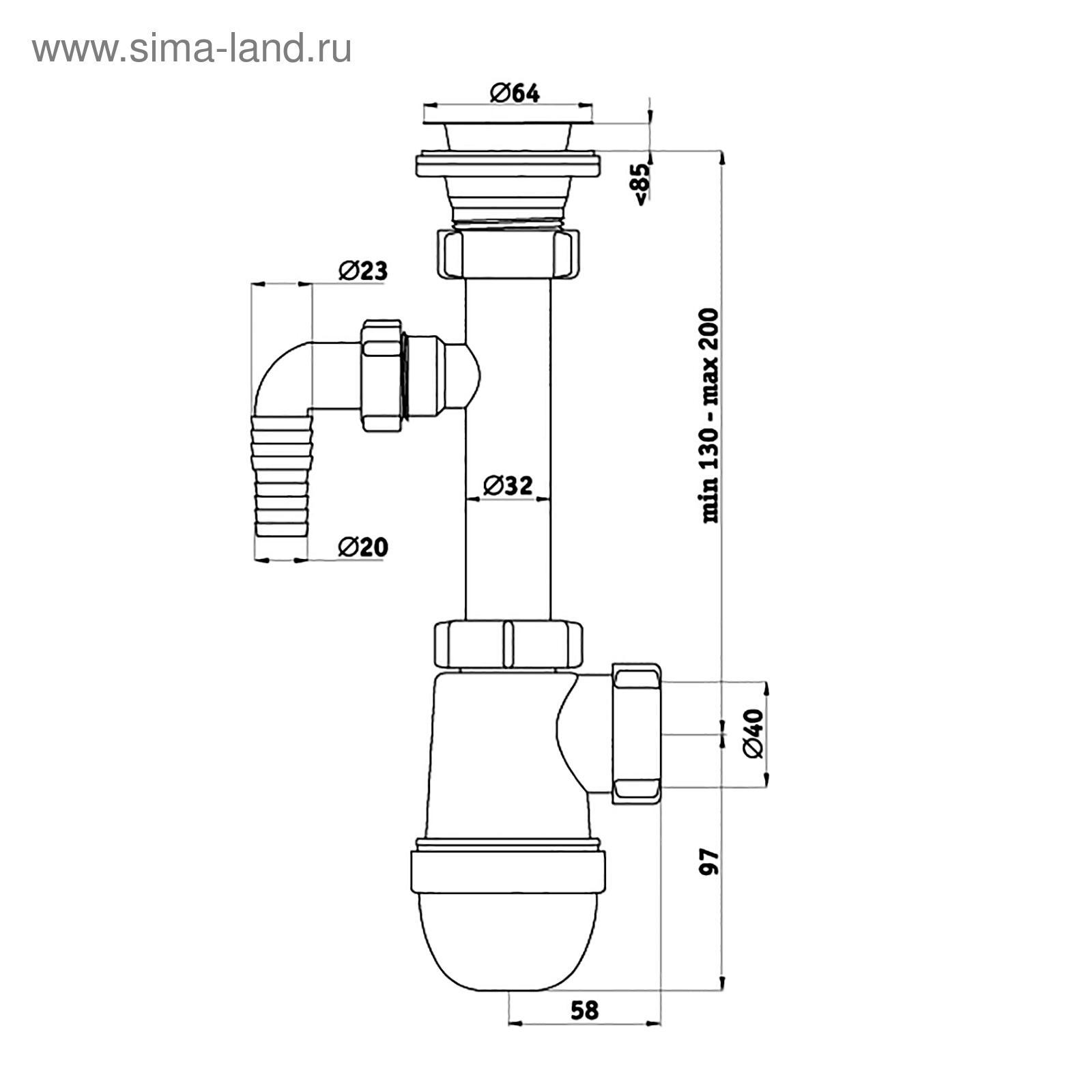 Сифон для раковины "АНИ Пласт" C1300, 1 1/4" х 40 мм с отводом стиральной машины