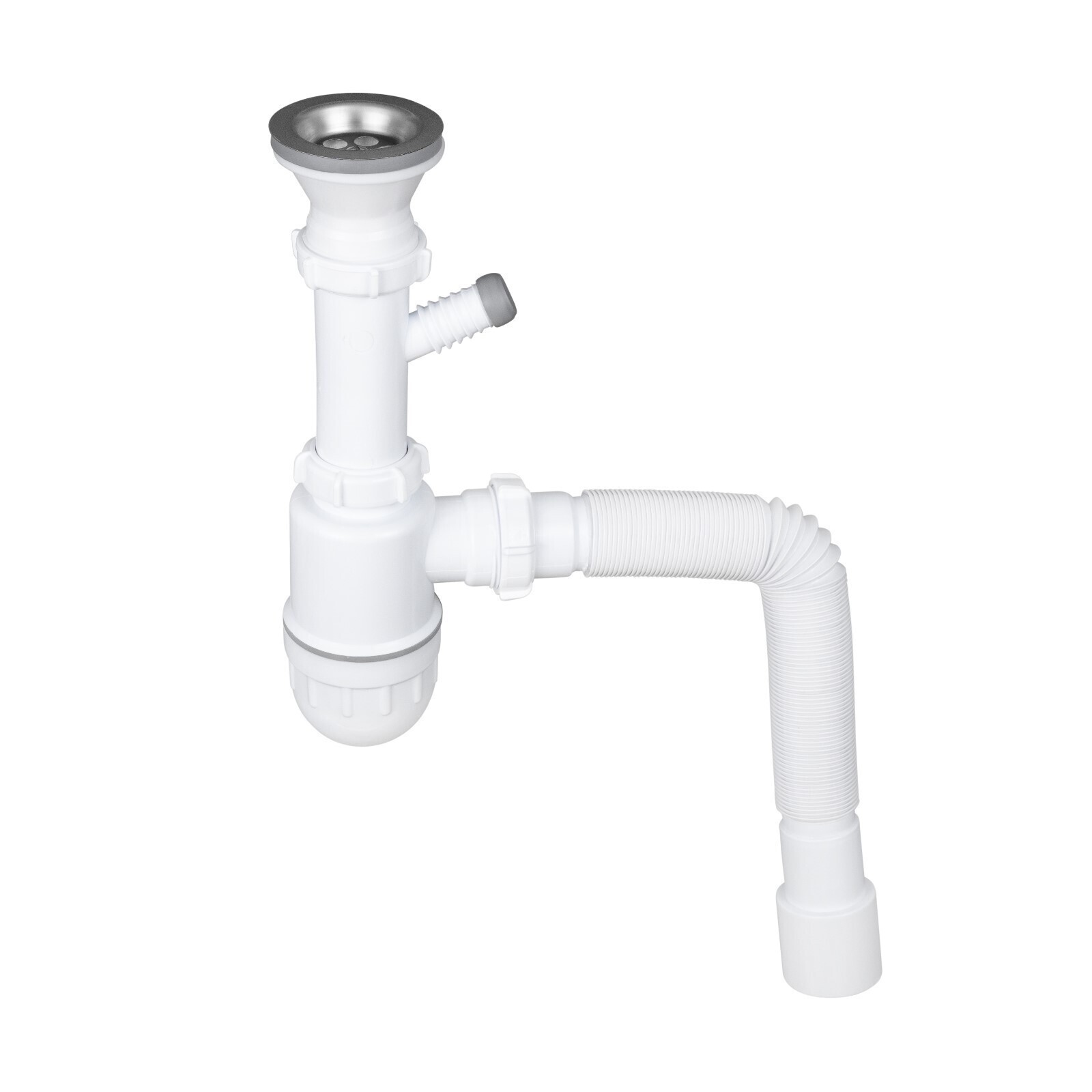 Сифон для раковины VIANT «ПРОФИ» 1½ - d=40 мм, решетка d=70 мм, с отводом под с/м, c гофрой 940671