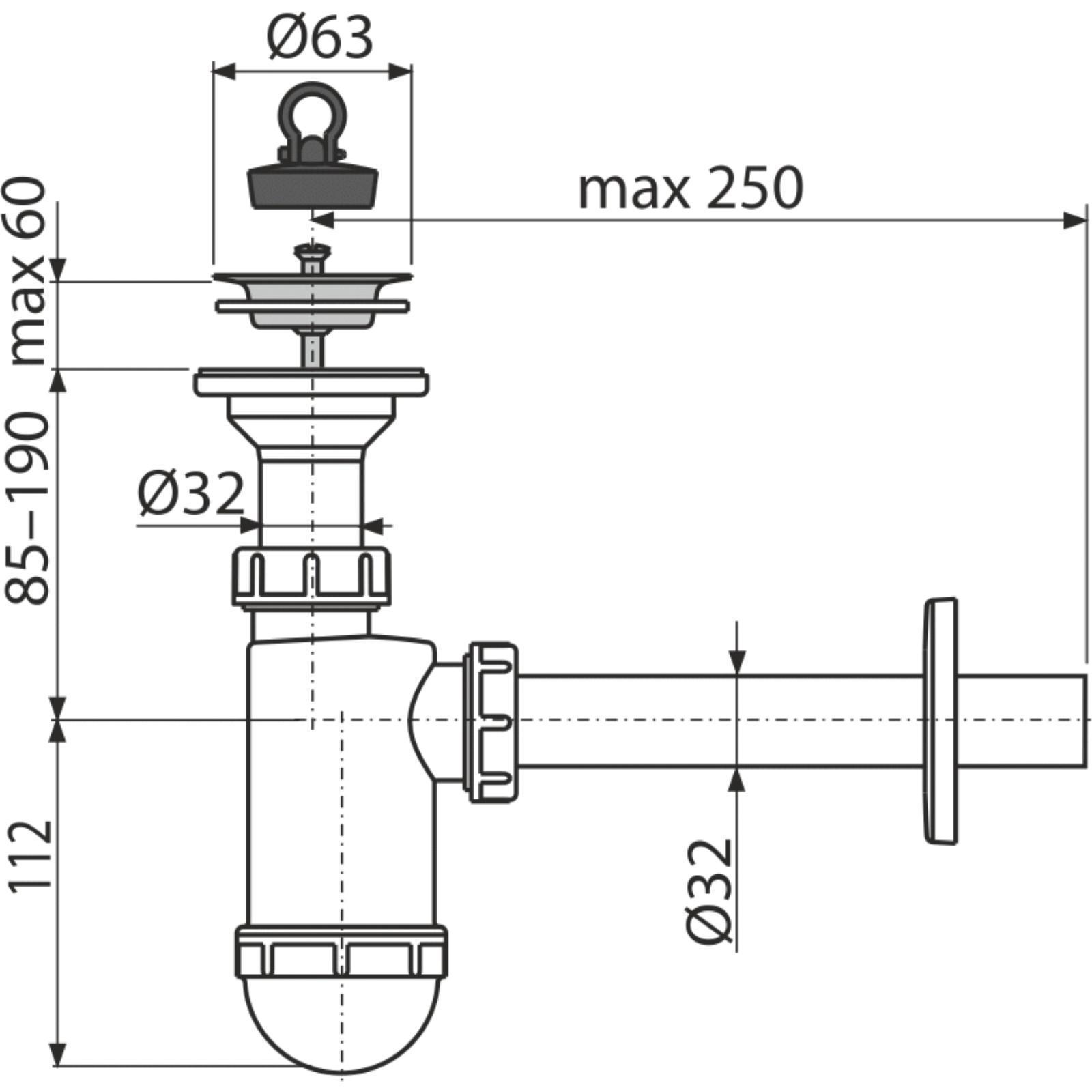 Бутылочный сифон с водосливом в комплекте предназначен для подключения к умывальникам.