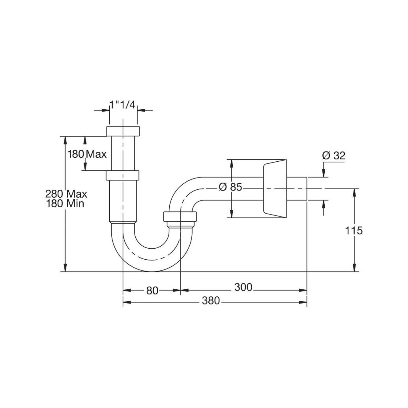 Сифон для раковины BONOMINI 2710PP30B0WZ, накидная гайка 1 1/4", d=32 мм, белый