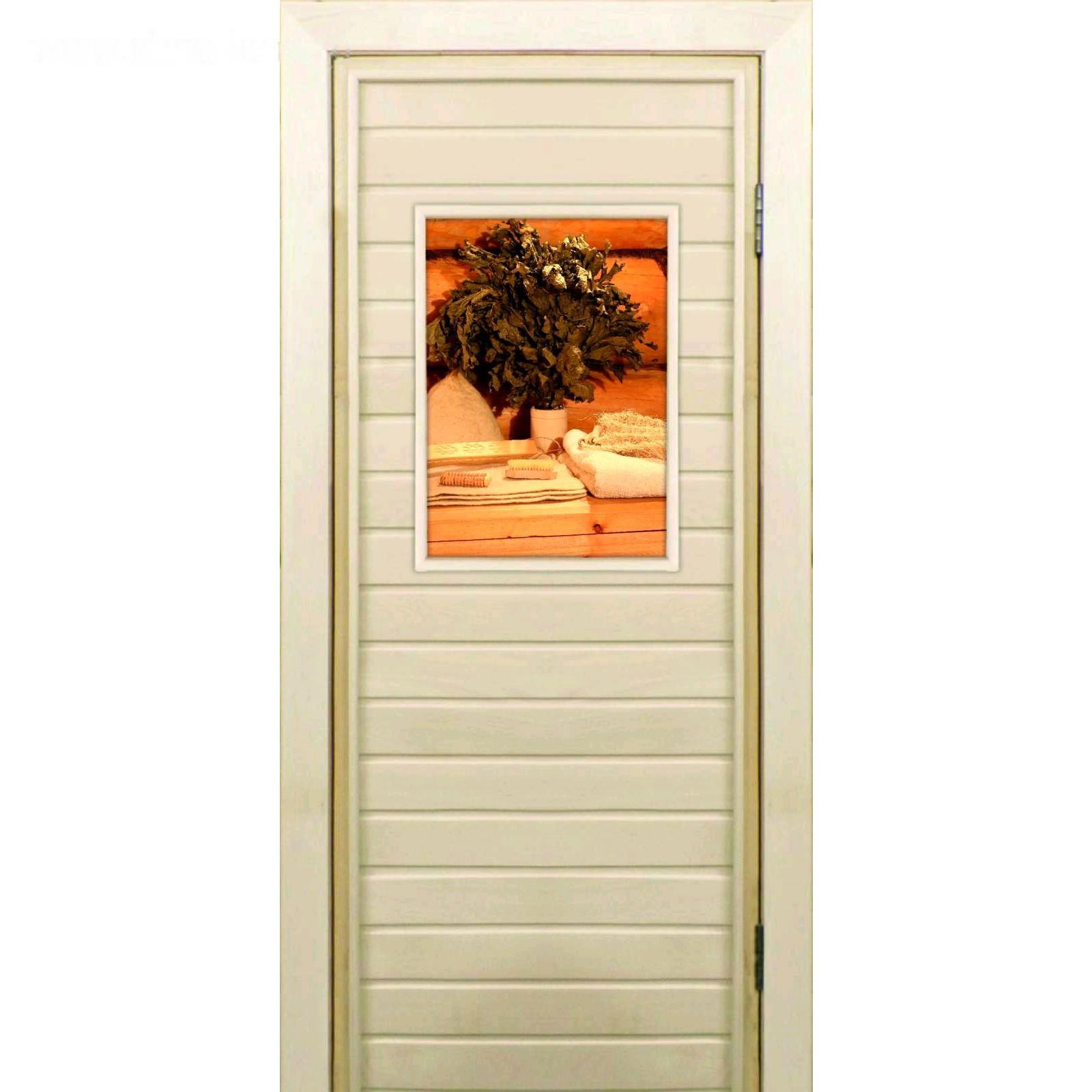 Дверь для бани со стеклом (40*60), "Банные радости", 180×70см, коробка из осины