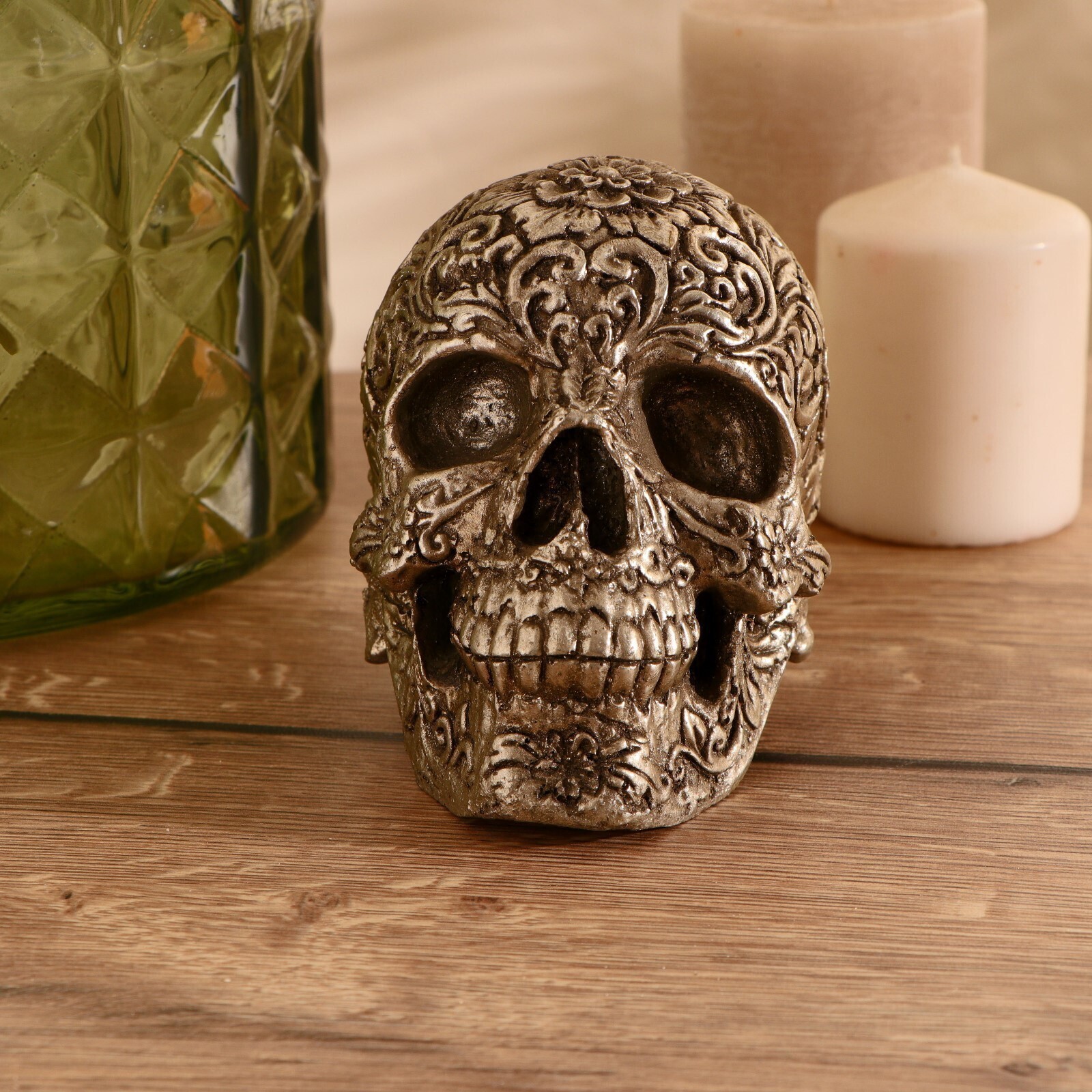 Сувенир "Череп" полирезин 10х13 см, серебро