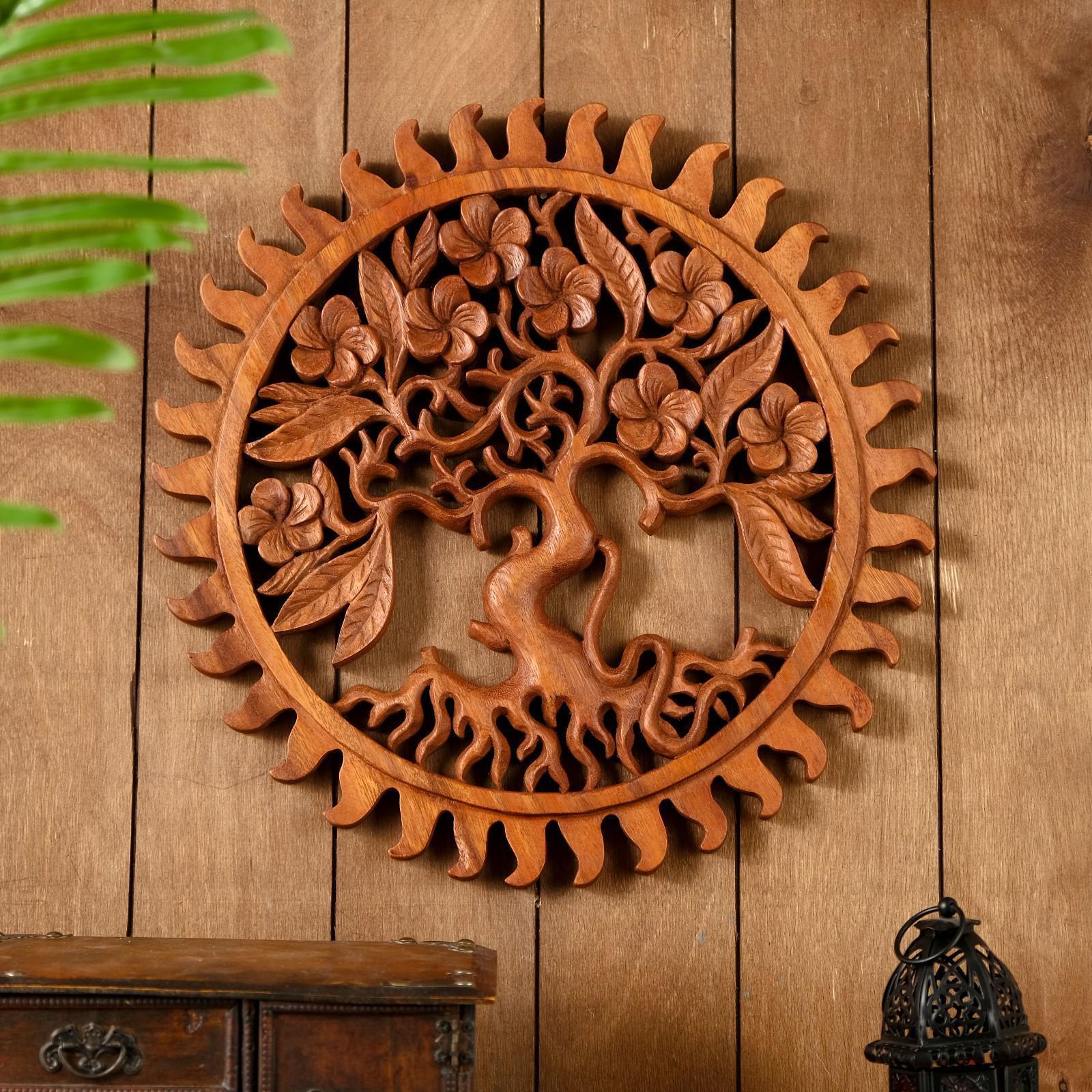 Панно резное дерево "Райское дерево" 40х40х2 см