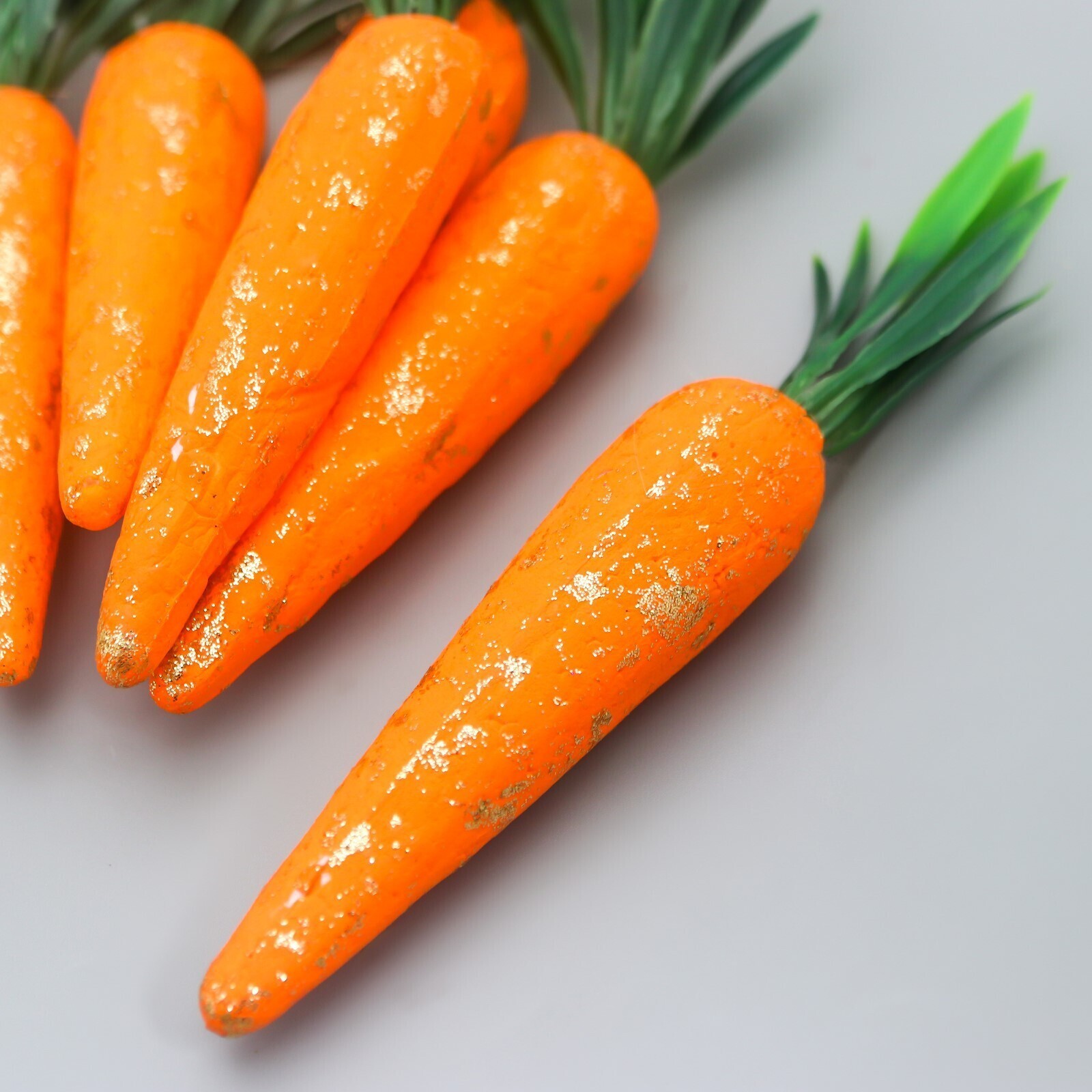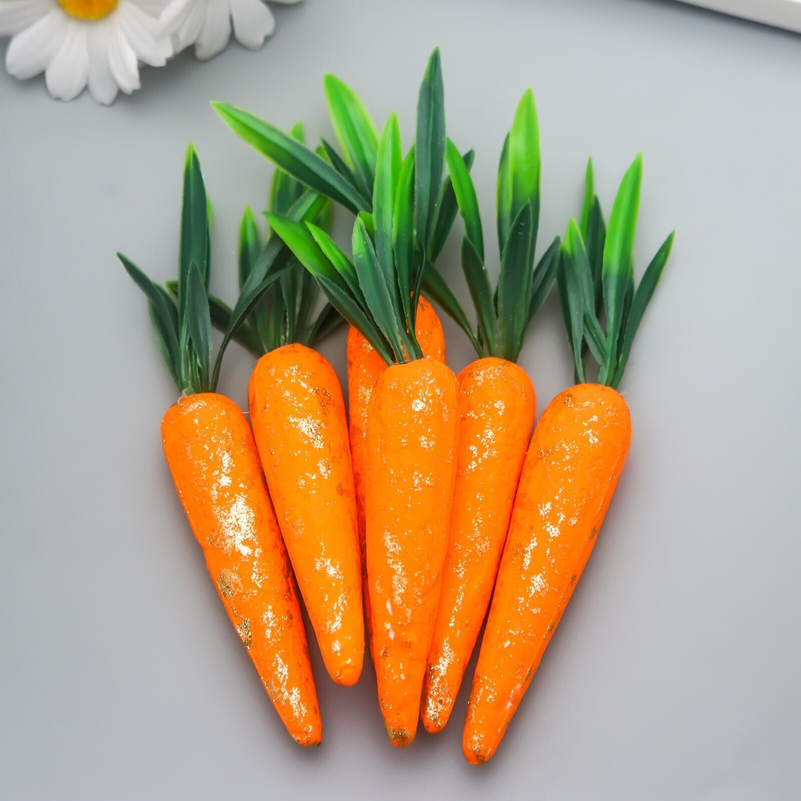 Декор пасхальный "Морковки с золотыми блёстками" набор 6 шт 10 см