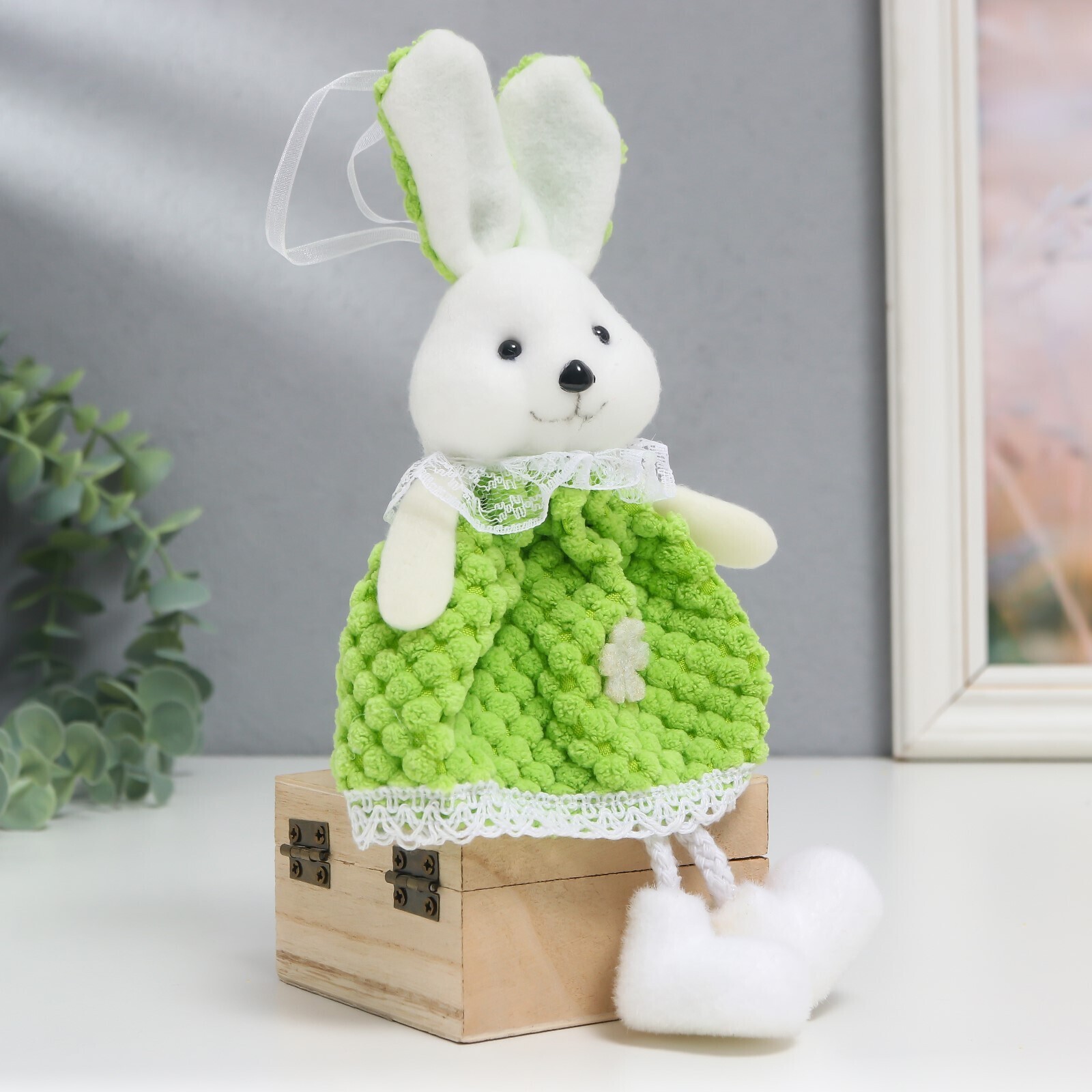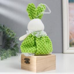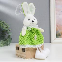 Сувенир "Зайчик в зелёном вязаном платье с цветком" 24 см