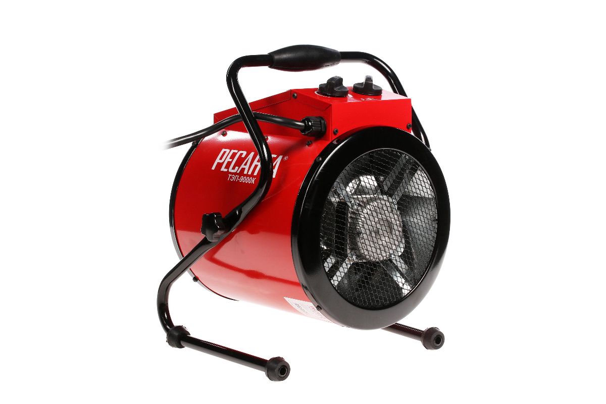 Электрическая тепловая пушка Ресанта ТЭП-9000К подходит для отопления помещений площадью до 90 м 2 . Мощность 9 кВт. Работает от сети 380В. Производительность 300 м 3 /ч. Пушка не сжигает кислород во время работы. Её можно использовать в местах нахождения людей.