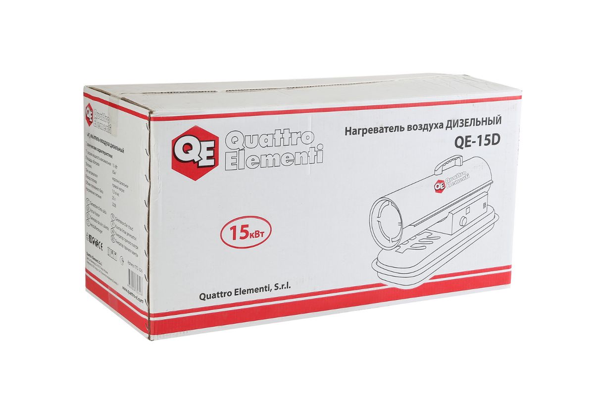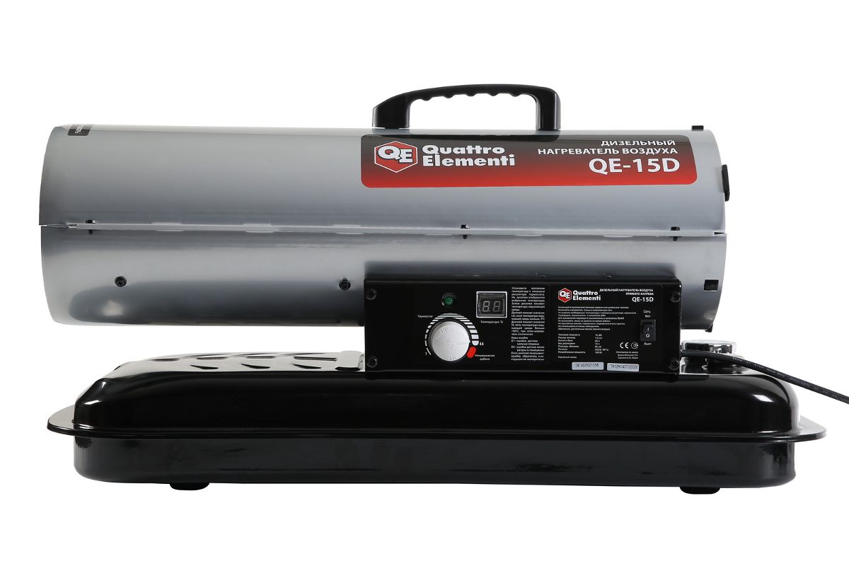 QUATTRO ELEMENTI QE-15D NEW – дизельная тепловая пушка для обогрева нежилых помещений до 150 м². Работает на дизельном топливе или керосине и от розетки 220 В. Подойдёт для обогрева складов, ангаров, общих гаражей и других проветриваемых помещений.