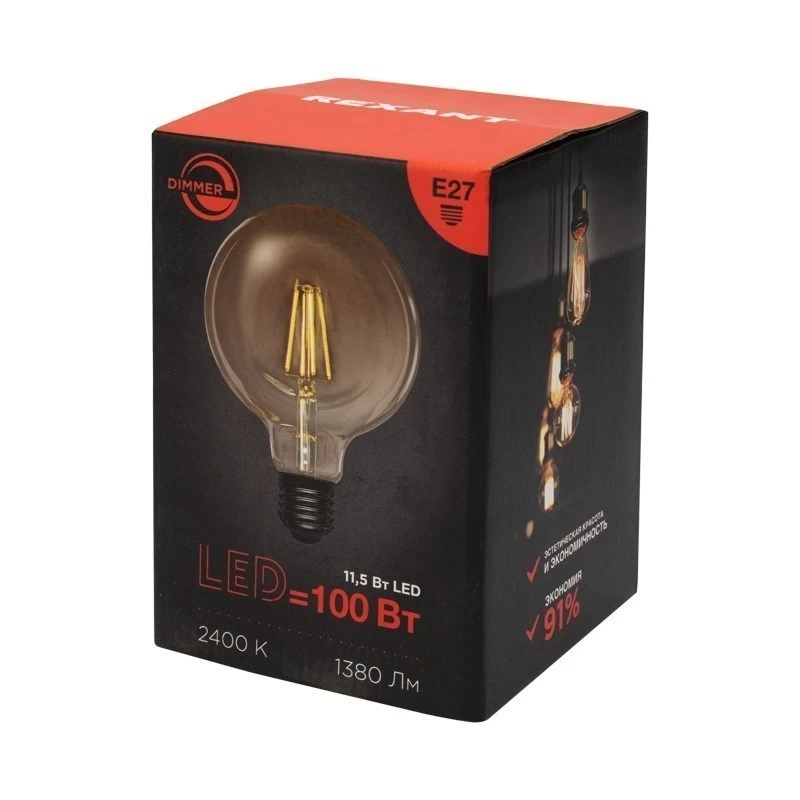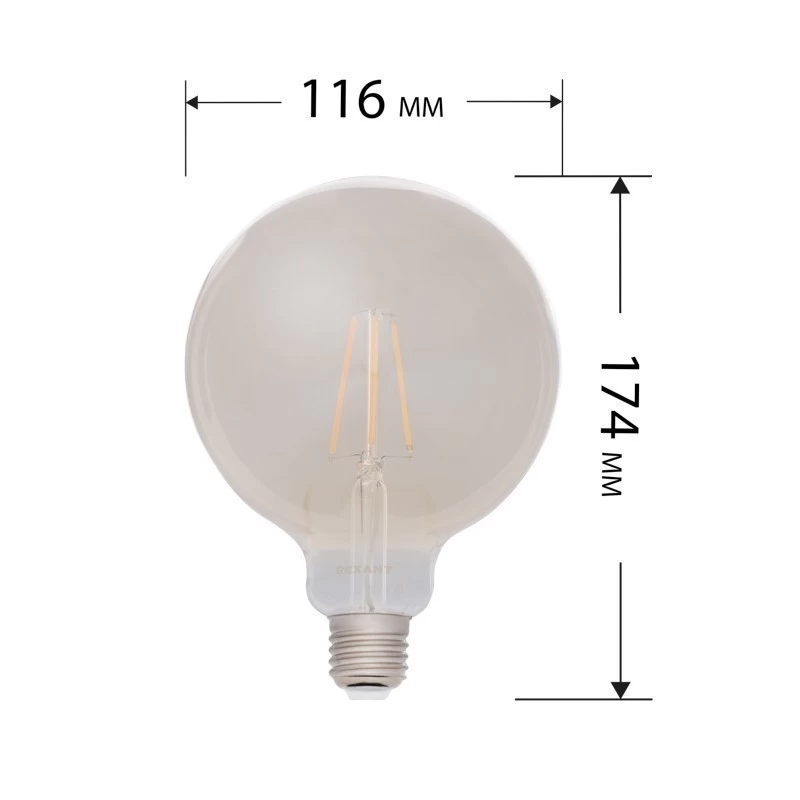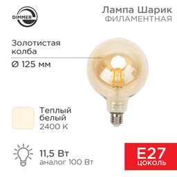 Лампа филаментная LOFT GLOBE A125 11,5Вт 1380Лм 2400K E27 диммируемая золотистая колба REXANT