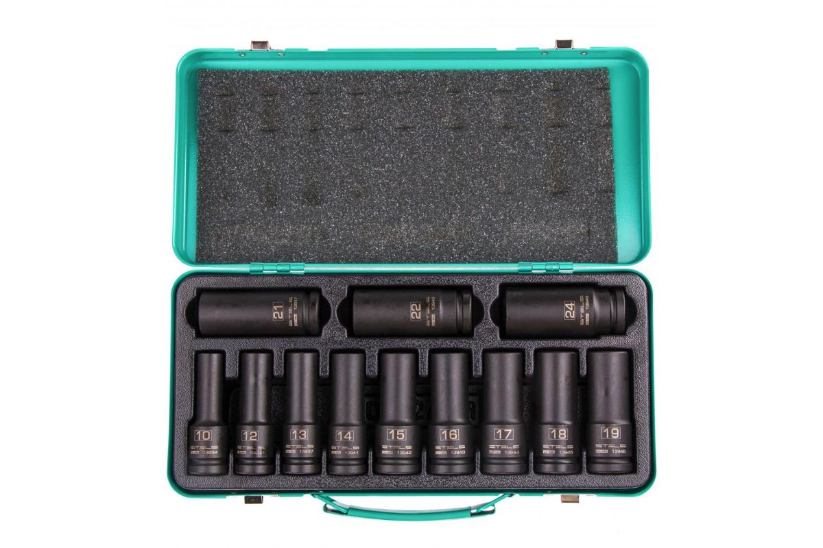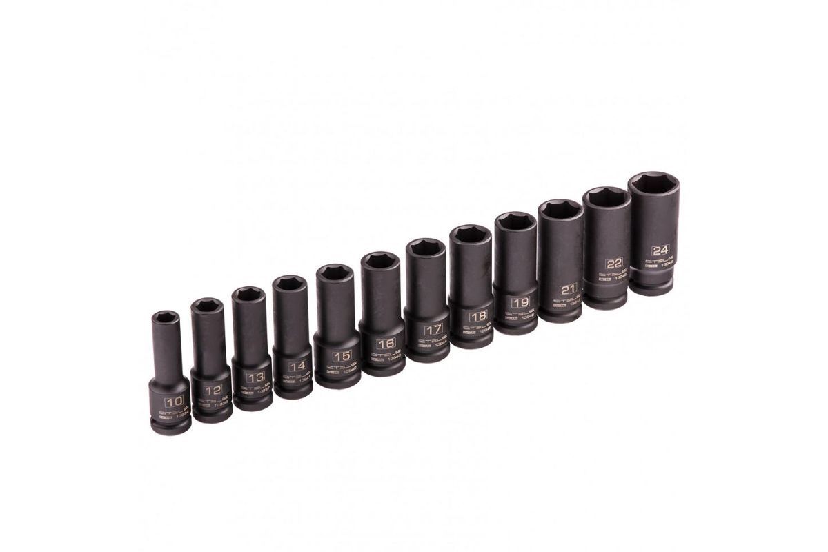 Набор ударных глубоких шестигранных торцевых головок STELS 1/2'' 10-24 в кейсе 12шт.