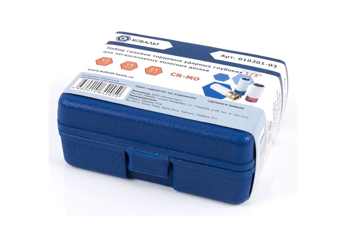 Набор головок КОБАЛЬТ 10301-03 — это оснастка для ударного гайковерта. Состоит из 3 глубоких торцевых головок с посадочным квадратом 1/2''. Применяется для снятия и установки колес. В комплекте — компактный кейс для хранения.