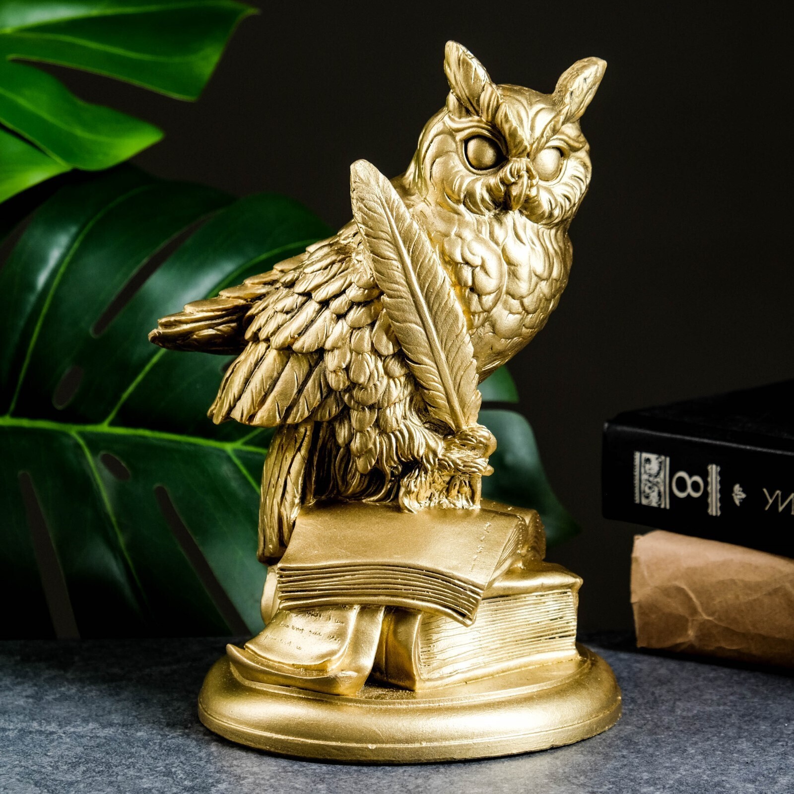 Статуэтка "Филин на книгах большой" золото, 21х14х3см