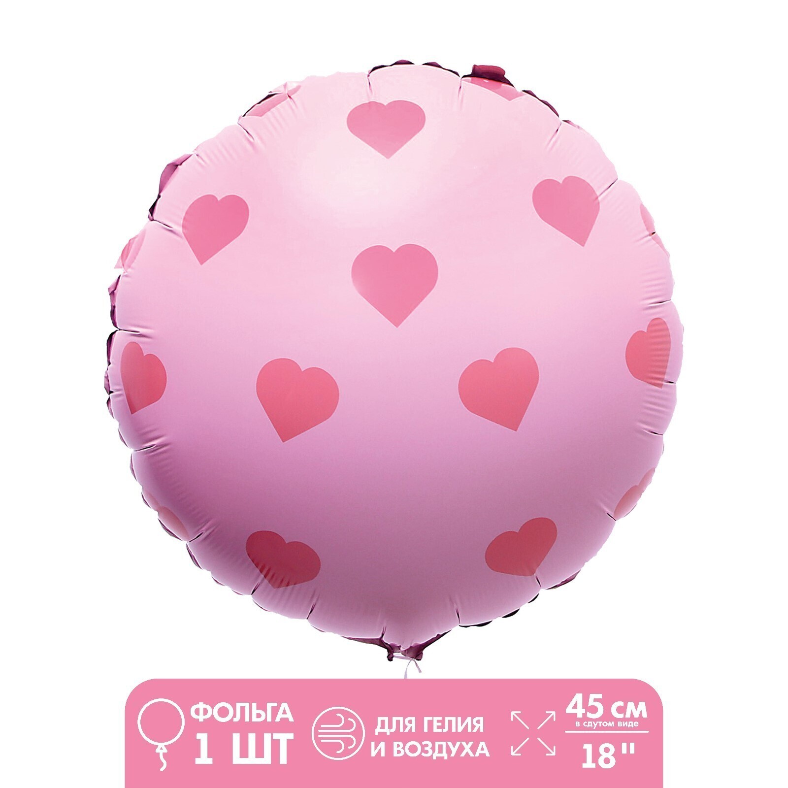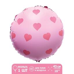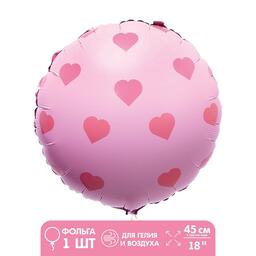 Шар фольгированный 18" "Розовый круг с сердечками"
