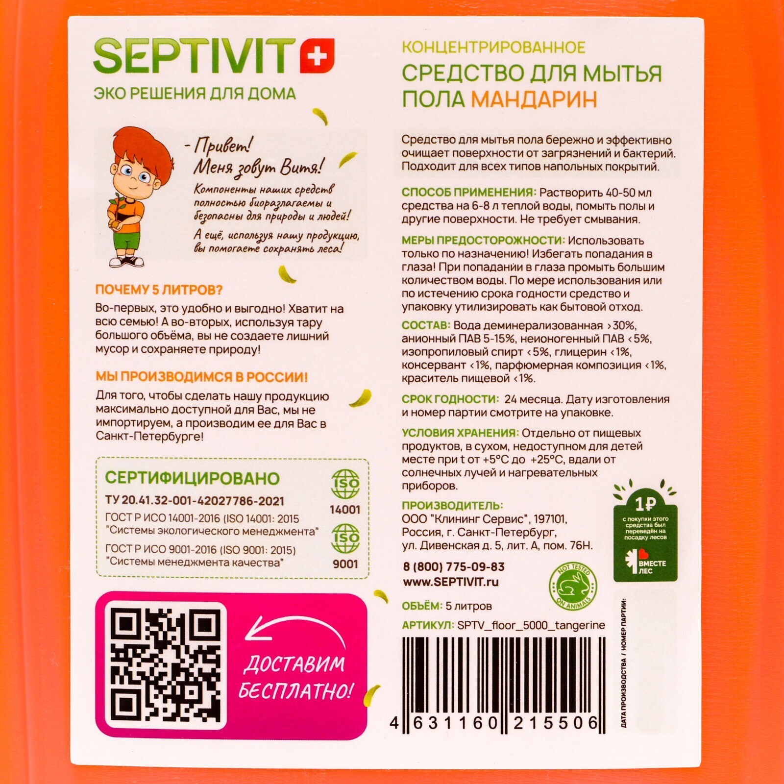 Средство для пола SEPTIVIT "Мандарин", 5 л