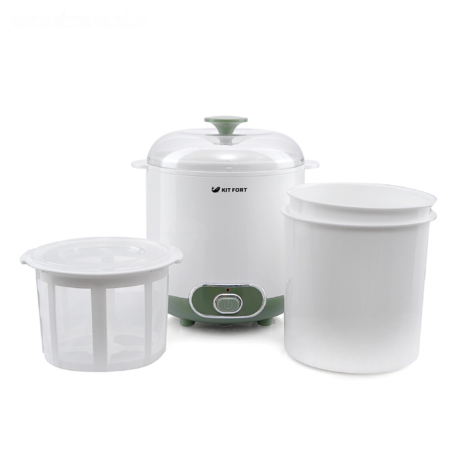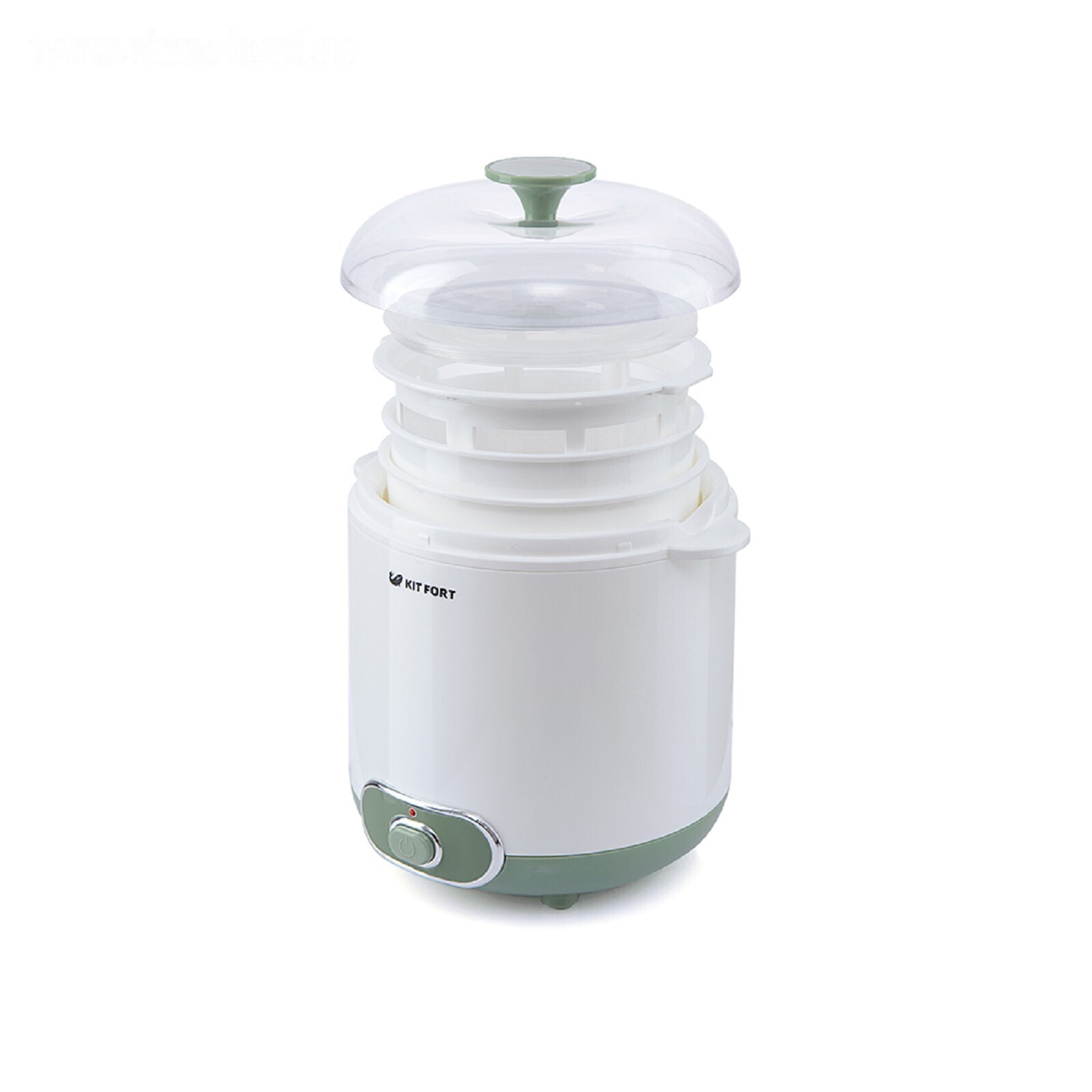 Йогуртница Kitfort КТ-2005, 20 Вт, 1.5 л, 1 ёмкость, пластик, бело-зелёная