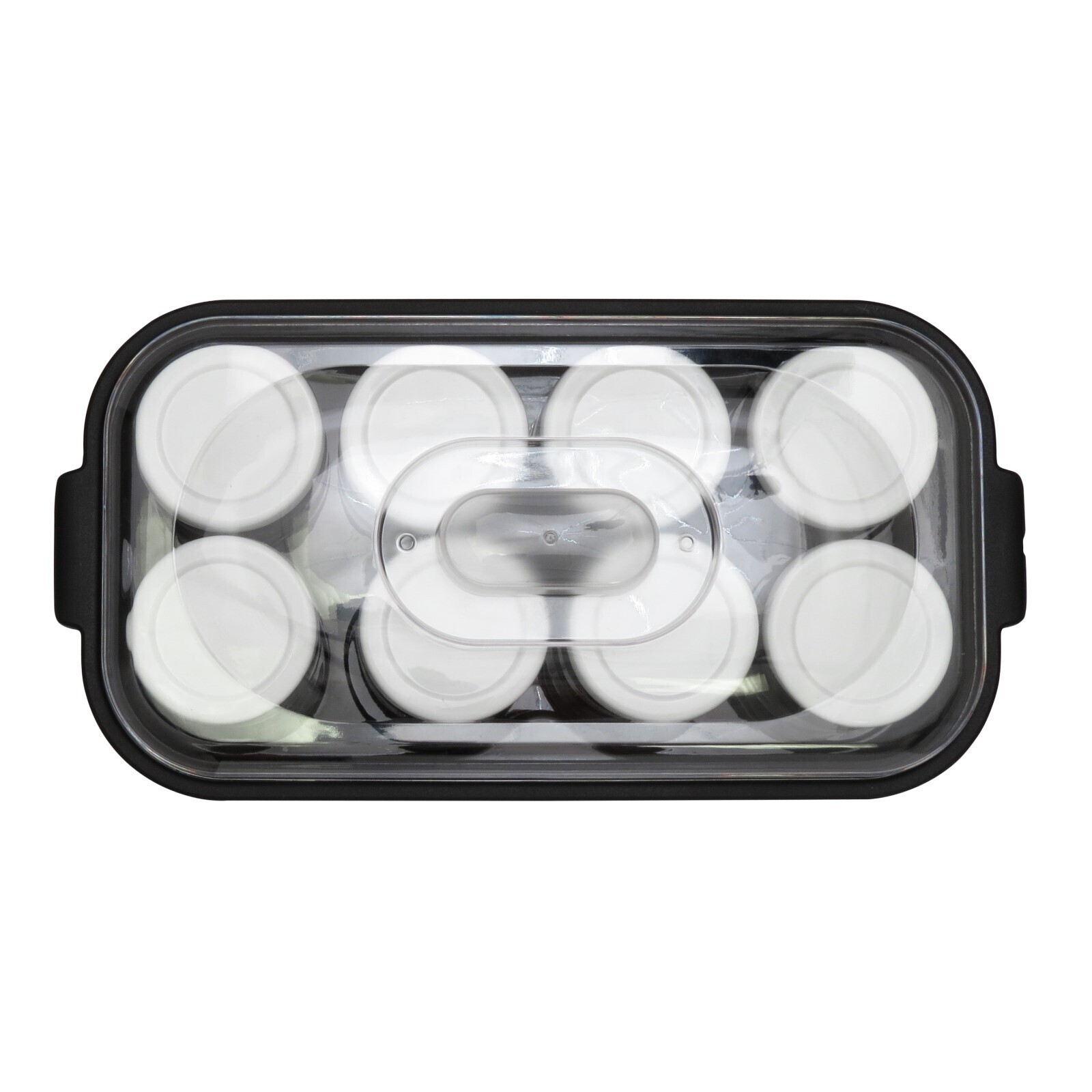 В комплекте есть восемь баночек для загрузки ингредиентов и приготовления кисломолочного продукта порционно.