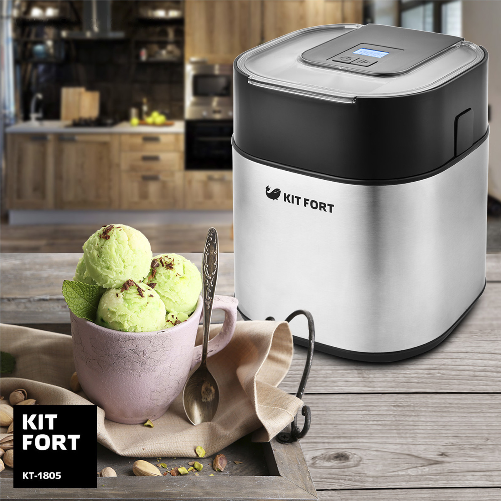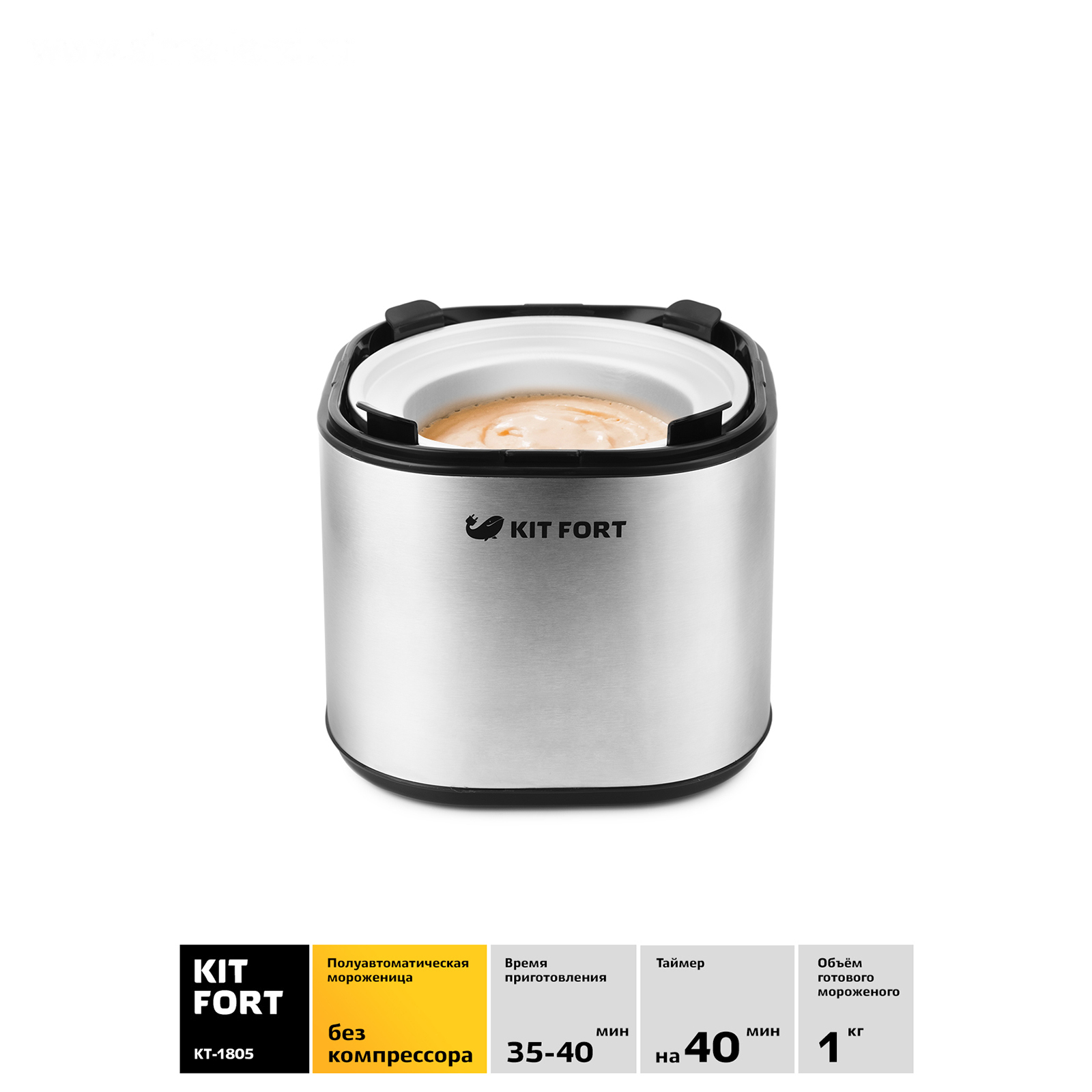 Мороженица Kitfort KT-1805, полуавтомат, 1.5 л, съёмная чаша, серебристая